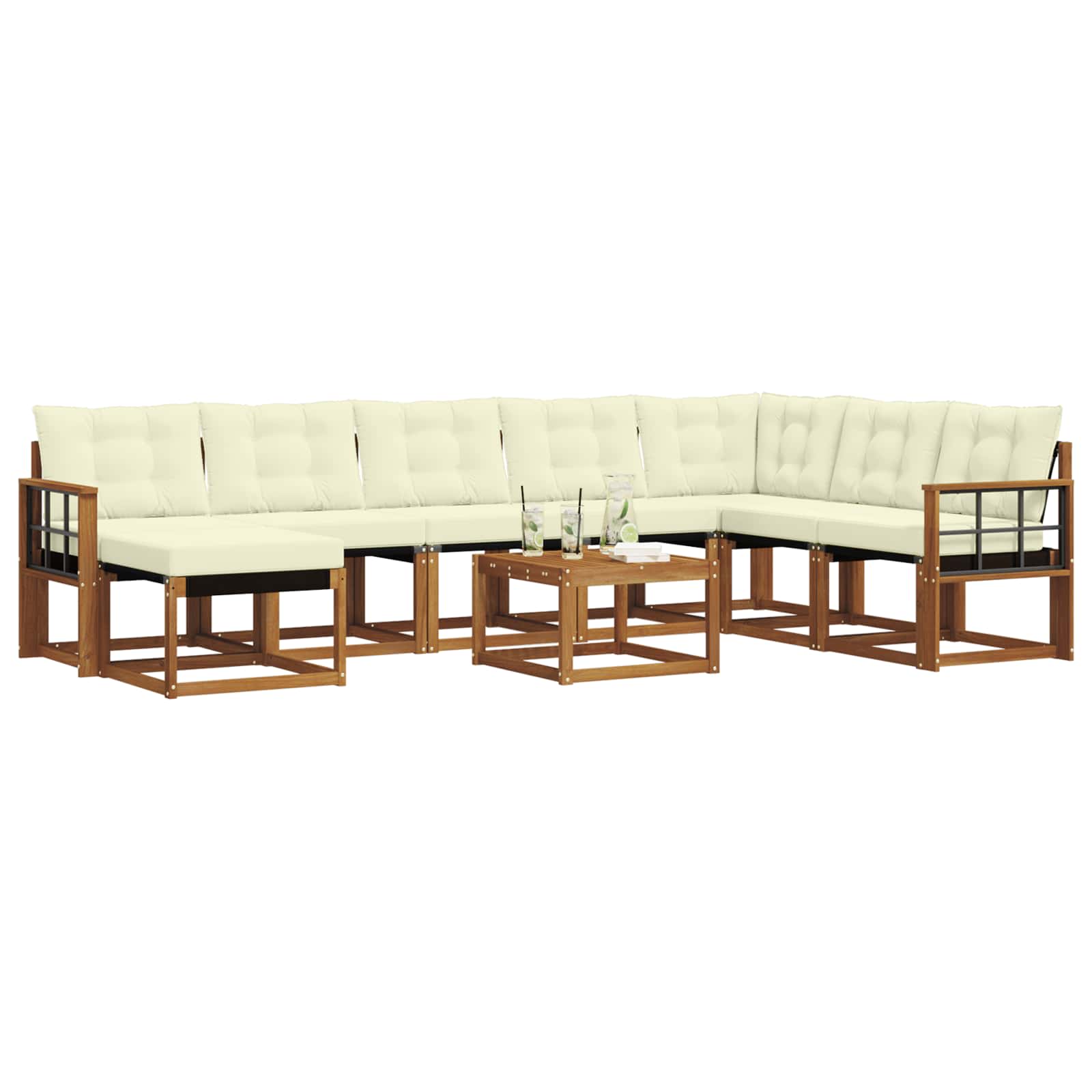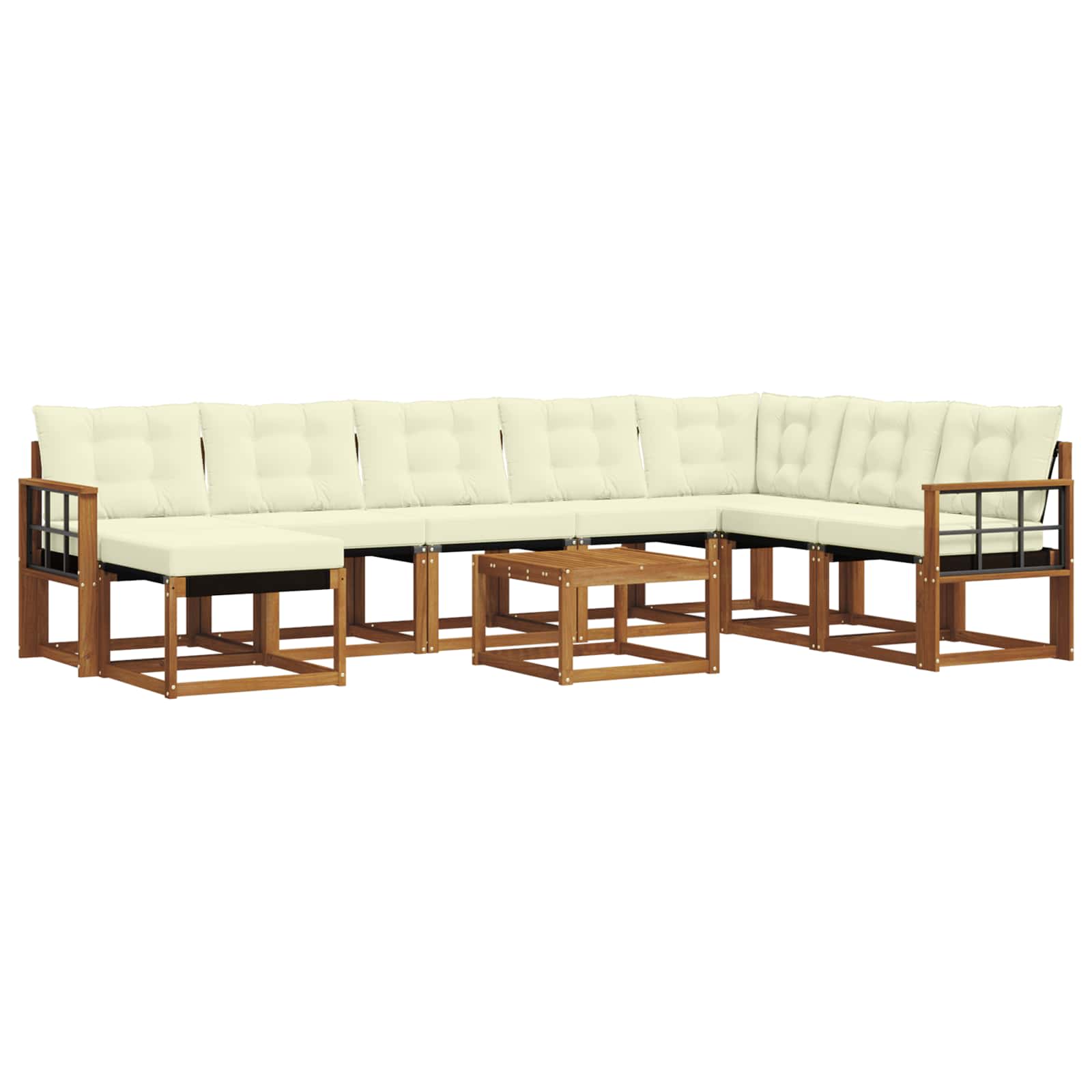 Dieses moderne Sofaset bringt sowohl Stil als auch Funktionalität in jeden Außenbereich. Mit klaren, schlichten Linien wirkt es sehr elegant und passt perfekt in zeitgenössische Gärten. Ideal für Terassen und entspannte Poolpartys, bietet es bequeme Sitzplätze und einen stabilen Rahmen, um gemütliche Nachmittage und fröhliche Abende zu genießen. Massivholz-Akazienrahmen Das Set besteht aus langlebigem Akazienholz, das für seine Stärke bekannt ist und super aussieht. Dieses Holz gibt jedem Außenbereich einen warmen, einladenden Look und ist gleichzeitig robust und wetterfest. Textilene-Komfort Mit einer Textilene-Sitzfläche sorgt das Sofaset für extra Komfort. Textilene ist UV-beständig, behält seine Farbe und Textur auch bei Sonnenschein. Perfekt für Gartenmöbel, weil es sowohl praktisch als auch schick ist. Wetterfeste Kissen Die dick gepolsterten Kissen aus wetterfestem Stoff bieten optimalen Komfort. Die Kissen sind feuchtigkeitsabweisend und haben Reißverschlüsse für einfache Reinigung, was die Pflege echt unkompliziert macht. Praktische Armlehnen Die stabilen Armlehnen aus Akazienholz unterstützen eine entspannte Haltung. Sie sehen nicht nur gut aus, sondern bieten auch guten Halt, was das Sitzen angenehm macht. Leicht zu reinigende Oberflächen Das Sofaset benötigt wenig Pflege; einfach mit einem feuchten Tuch abwischen. So bleibt es so ansprechend wie am ersten Tag, damit du mehr Zeit mit entspannen verbringen kannst.
