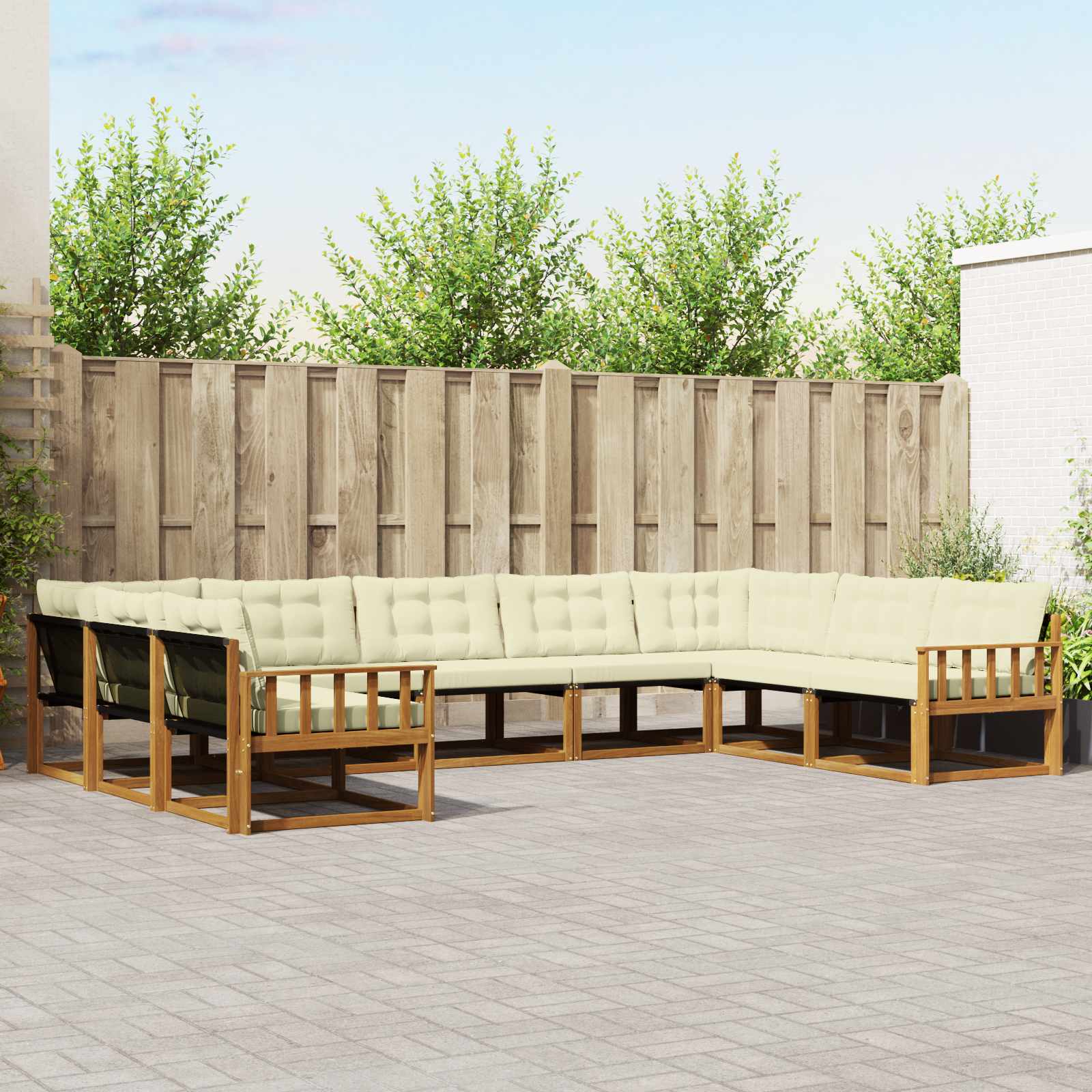 Das Outdoor-Möbel-Set verbindet Stil und Funktionalität und ist ein toller Mittelpunkt für jeden Garten oder jede Terrasse. Mit einem modernen Design und klaren Linien sorgt es für Eleganz und macht das Entspannen im Freien und gesellige Treffen einfach. Gefertigt aus solidem Akazienholz steht das Set für Langlebigkeit und sieht dabei immer gut aus – perfekt für alle, die praktische und schicke Gartenmöbel mögen. Robustes Akazienholz: Dieses Outdoor-Möbel-Set ist aus solidem Akazienholz gefertigt und bekannt für seine Langlebigkeit und Wetterbeständigkeit. Die stabile Konstruktion bietet zuverlässige Unterstützung und langhaltige Stabilität, während der warme Holzton jede Garten- oder Terrassenatmosphäre ergänzt. Wetterfeste Bauweise: Die lackierte Oberfläche schützt gegen Sonne, Regen und andere Witterungseinflüsse. So bleibt das Set lange schön und funktional, egal ob im Garten, auf der Terrasse oder im Innenhof. Design & Komponenten: Jedes Stück, ob Armlehne oder Rückenlehne, ist für Stil und Funktion ausgelegt. Praktische Features bieten extra Komfort, während das harmonische Design ein ansprechendes Gesamtbild für verschiedene Outdoor-Anlässe erzeugt. Komfort & Vielseitigkeit: Das modulare Design erlaubt verschiedene Anordnungen, die auf deine Bedürfnisse zugeschnitten werden können. Egal, ob Entspannen, gesellige Treffen oder ruhige Lesezeiten – dieses Set passt sich flexibel an jede Umgebung an und bietet maximalen Komfort. Einfache Pflege: Wisch einfach mit einem feuchten Tuch drüber und verwende keine aggressiven Reinigungsmittel. Regelmäßige Pflege sorgt dafür, dass das Set gut aussieht und lange hält.