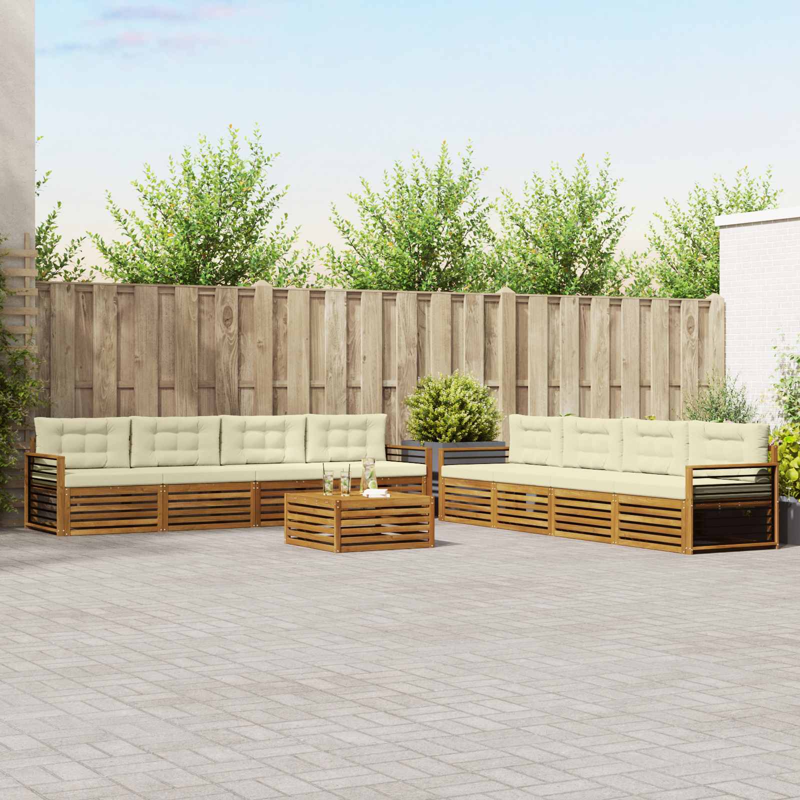 Gestalte deinen Garten oder deine Terrasse mit diesem super coolen Outdoor-Sofa-Set zu einem modernen Rückzugsort, wo Stil auf Funktion trifft. Schlicht und minimalistisch, strahlt das Set Eleganz und Raffinesse aus und ist perfekt für alle, die klare Linien und zeitgemäßes Design lieben. Die vielseitige Farbe und die schlichte Form passen in jede Außensituation und schaffen eine einladende Atmosphäre für Gäste oder entspannende Momente mit einem Buch in der Hand. Massivholz Akazie: Dieses Sofa-Set ist aus solidem Akazienholz gefertigt, was es extrem langlebig macht und bestens für alle Wetterlagen geeignet ist. Akazienholz bringt nicht nur eine tolle Optik mit, sondern hält auch den Elementen stand – perfekt für alle Outdoor-Aktivitäten. Vollständig einheitliche Farbe: Das Sofa-Set in einem wunderschönen Braunton fügt sich klasse in verschiedene Gartenlandschaften ein. Diese Farbkonstanz sorgt dafür, dass dein Outdoor-Bereich harmonisch und einladend wirkt. Fester Lattenrahmen: Der stabile Lattenrahmen sorgt für Zuverlässigkeit und Stabilität und macht das Set zur idealen Wahl für den Außenbereich. Die stabile Struktur bietet Unterstützung und bleibt dabei im Budget – perfekt für alle, die Funktionalität und Stil schätzen. Modulares Sitzen: Freu dich auf maximale Flexibilität mit dem modularen Design. Passe die Anordnung ganz nach deinem Anlass an, egal ob du eine kleine Runde oder eine große Feier planst. Diese Anpassungsfähigkeit ist perfekt für eine ständig wechselnde Outdoor-Gestaltung. Einfache Pflege: Die Pflege deines Sofa-Sets ist kinderleicht. Ein feuchtes Tuch reicht aus, um das Set frisch und ansprechend zu halten – so sparst du Zeit und sorgst dafür, dass es lange schön bleibt.