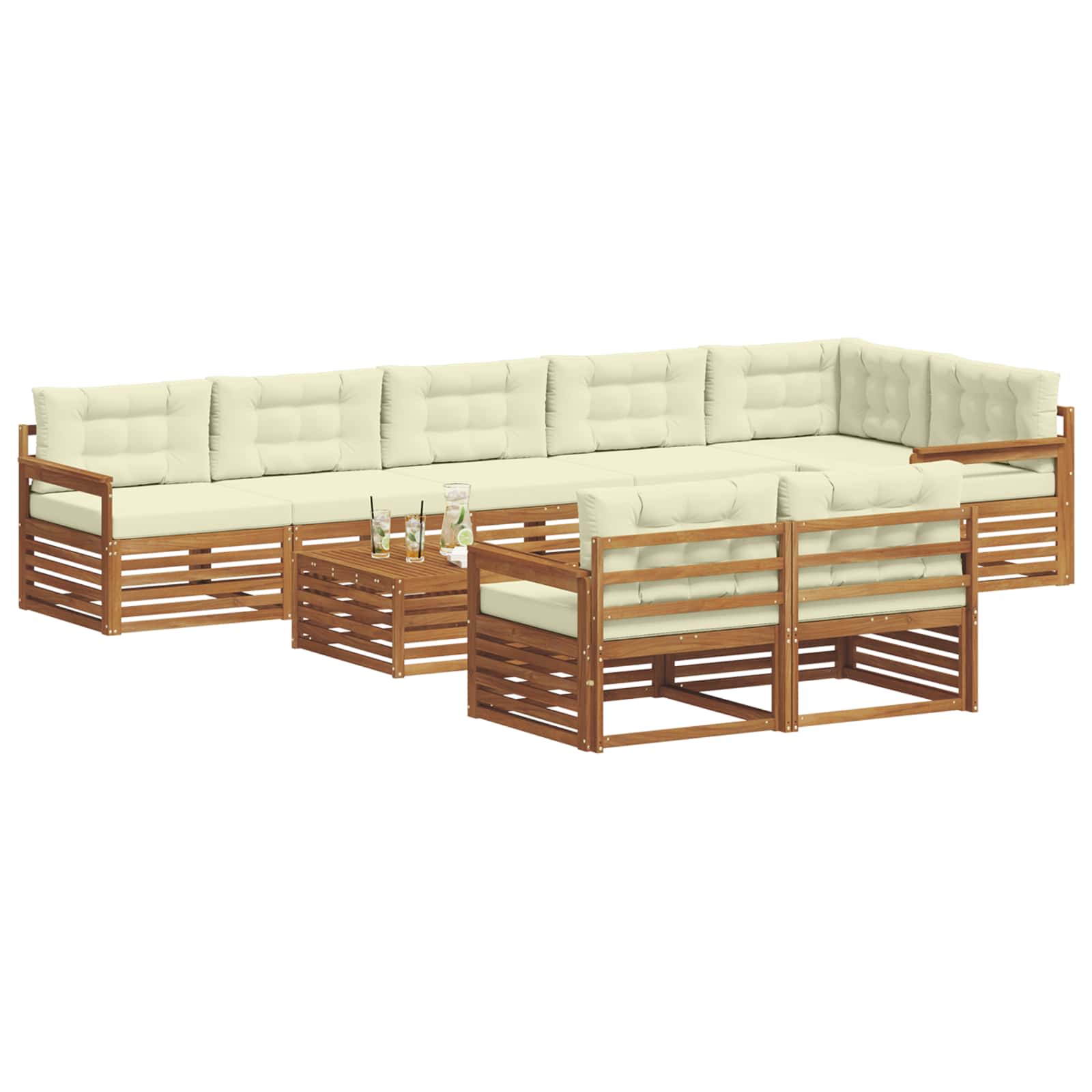 Das Gartenmöbelset bietet Style und Funktionalität und wird zum absoluten Highlight für jeden Garten oder jede Terrasse. Das moderne Design mit klaren Linien und minimaler Gestaltung bringt Eleganz und macht das Entspannen im Freien sowie gesellige Zusammenkünfte noch angenehmer. Ganz aus massivem Akazienholz gefertigt, bietet das Set nicht nur Langlebigkeit, sondern sieht auch mega gut aus. Die perfekte Wahl für alle, die praktische und schicke Möbel wollen. Langlebiges Massivholz Akazie: Dieses Gartenmöbelset aus solidem Akazienholz ist bekannt für seine Widerstandsfähigkeit und Langlebigkeit bei Outdoor-Verhältnissen. Die robuste Bauweise sorgt für jederzeit eine stabile Basis, während der warme Holzton jeden Garten oder jede Terrasse verschönert. Wetterfestes Design: Mit einer lackierten Oberfläche bietet dieses Gartenmöbelset zusätzlichen Schutz gegen Sonne, leichten Regen und andere Wetterbedingungen. Der polierte Look hilft, sowohl die Optik als auch die Funktionalität zu erhalten und macht es perfekt für deinen Garten, die Terrasse oder den Hinterhof. Komponenten & Design: Jedes Teil, von den Armlehnen zu den Rückenlehnen, ist stilvoll und funktional gestaltet. Die stützenden Details bieten zusätzlichen Komfort, während das harmonische Design ein ansprechendes Gesamtbild für verschiedene Outdoor-Anlässe schafft. Komfort & Vielseitigkeit: Das modulare Design erlaubt individuelle Konfigurationen, die auf verschiedene Räume und Bedürfnisse abgestimmt werden können. Ideal zum Entspannen, für gesellige Treffen oder ruhige Lesemomente, passt sich dieses Set problemlos jeder Outdoor-Umgebung an und maximiert den Komfort. Einfache Pflege & Wartung: Um die Möbel in Schuss zu halten, wische die Oberfläche einfach mit einem feuchten Tuch ab und vermeide aggressive Reiniger. Regelmäßige Pflege sorgt dafür, dass sie gut aussehen und die Lebensdauer verlängert wird.