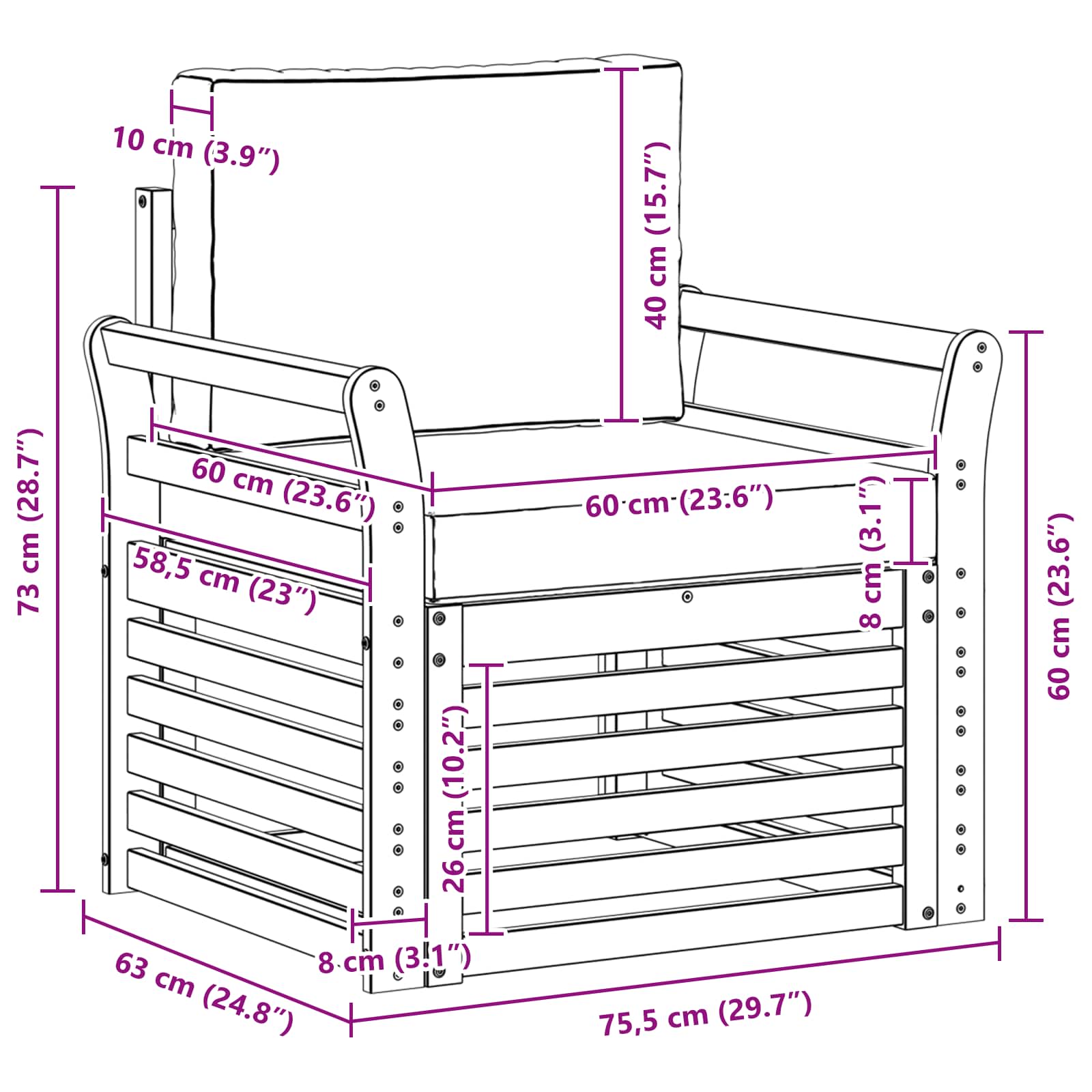 Outdoor-Sofagarnitur mit Kissen Natur 75,5 x 63 x 73 cm