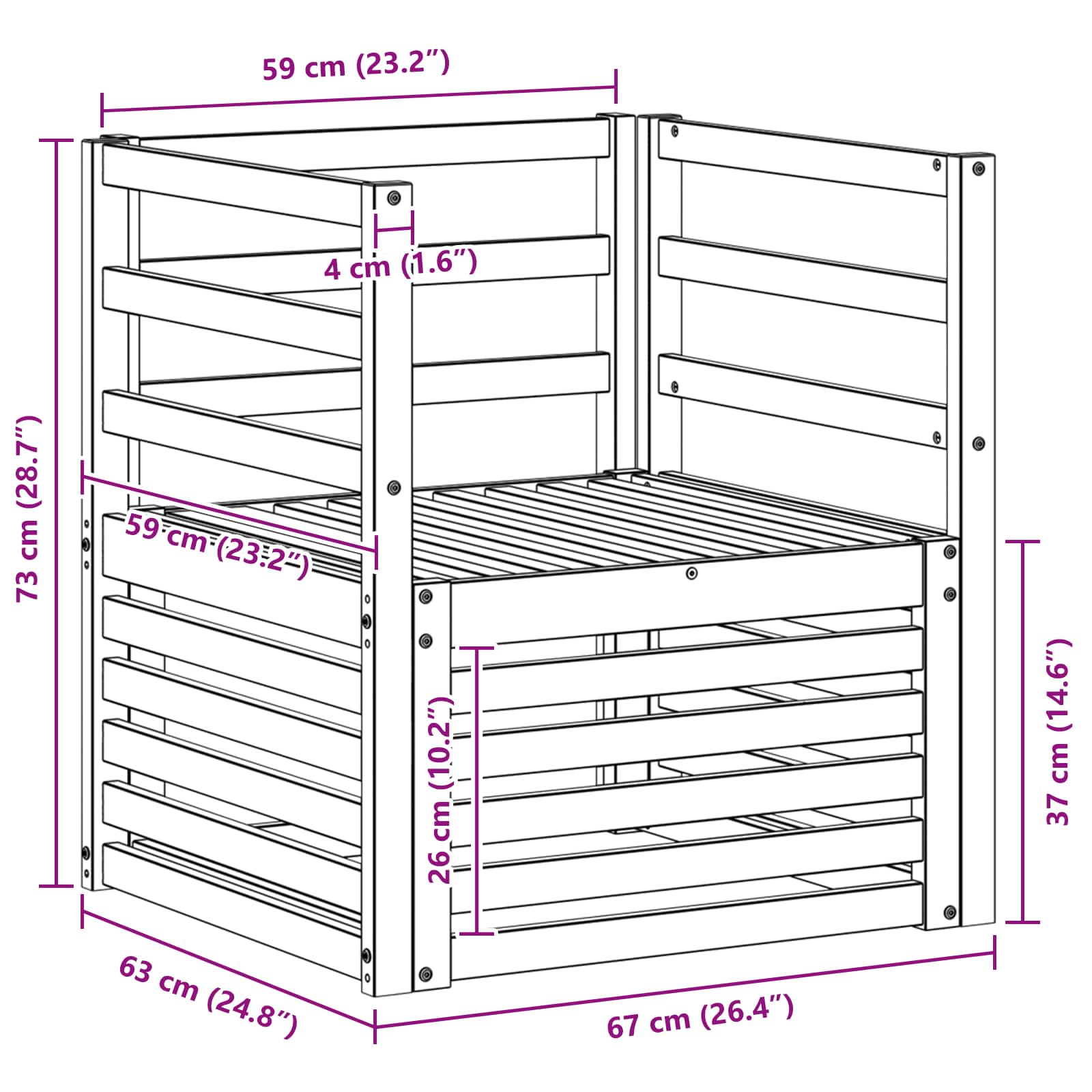 - Gesamtabmessungen: 67 x 63 x 73 cm (L x B x H)