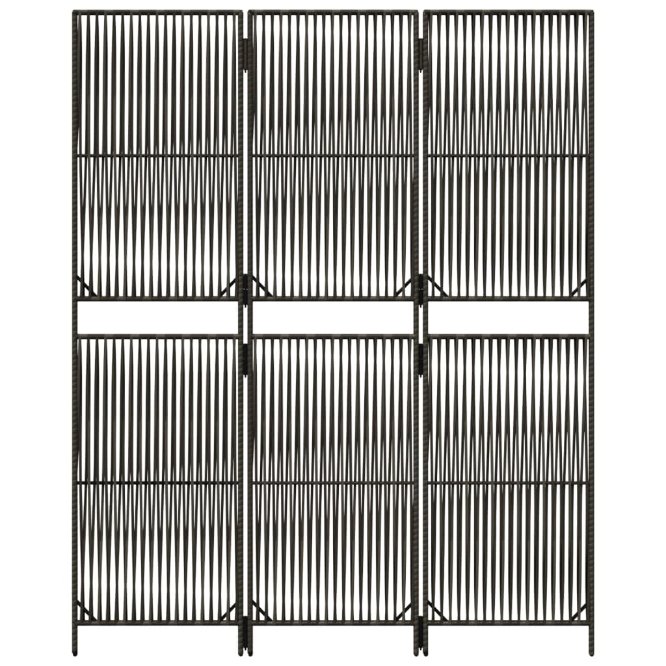 Dekoriere dein Zuhause und teile deinen Raum mit diesem Paravent aus Poly Rattan auf Langlebig und pflegeleicht: Der Paravent ist aus Poly Rattan gefertigt, das nicht nur wetterbeständig und langlebig ist, sondern sich auch einfach reinigen lässt.Robust: Die pulverbeschichtete Stahlrahmen sorgen für Robustheit und Stabilität.Flexibles Faltdesign: Die Paneele sind mit verzinkten Scharnieren miteinander verbunden, sodass sich der Paravent bei Bedarf platzsparend zusammenfalten lässt.Linien-Webdesign: Mit seinem Linien-Webdesign eignet sich dieser Paravent ideal, um zusätzliche Privatsphäre auf stilvolle und künstlerische Weise zu schaffen und gleichzeitig für ausreichende Belüftung und Licht im Raum zu sorgen.Vielseitig einsetzbar: Der Raumteiler eignet sich ideal, um einen privaten Bereich im Innen- und Außenbereich wie im Schlafzimmer, Wohnzimmer oder Büro zu schaffen. Du kannst ihn auch vor ein Fenster stellen, um starkes Sonnenlicht abzublenden. Wichtiger Hinweis:Um sie vollständig flach zu falten, müssen Sie die verzinkten Scharniere demontieren.