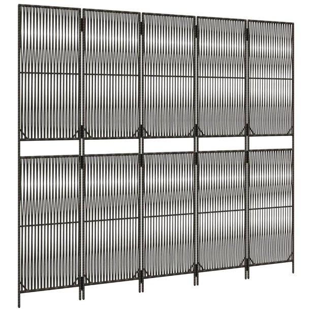 Dekoriere dein Zuhause und teile deinen Raum mit diesem Paravent aus Poly Rattan auf Langlebig und pflegeleicht: Der Paravent ist aus Poly Rattan gefertigt, das nicht nur wetterbeständig und langlebig ist, sondern sich auch einfach reinigen lässt.Robust: Die pulverbeschichtete Stahlrahmen sorgen für Robustheit und Stabilität.Flexibles Faltdesign: Die Paneele sind mit verzinkten Scharnieren miteinander verbunden, sodass sich der Paravent bei Bedarf platzsparend zusammenfalten lässt.Linien-Webdesign: Mit seinem Linien-Webdesign eignet sich dieser Paravent ideal, um zusätzliche Privatsphäre auf stilvolle und künstlerische Weise zu schaffen und gleichzeitig für ausreichende Belüftung und Licht im Raum zu sorgen.Vielseitig einsetzbar: Der Raumteiler eignet sich ideal, um einen privaten Bereich im Innen- und Außenbereich wie im Schlafzimmer, Wohnzimmer oder Büro zu schaffen. Du kannst ihn auch vor ein Fenster stellen, um starkes Sonnenlicht abzublenden. Wichtiger Hinweis:Um sie vollständig flach zu falten, müssen Sie die verzinkten Scharniere demontieren.