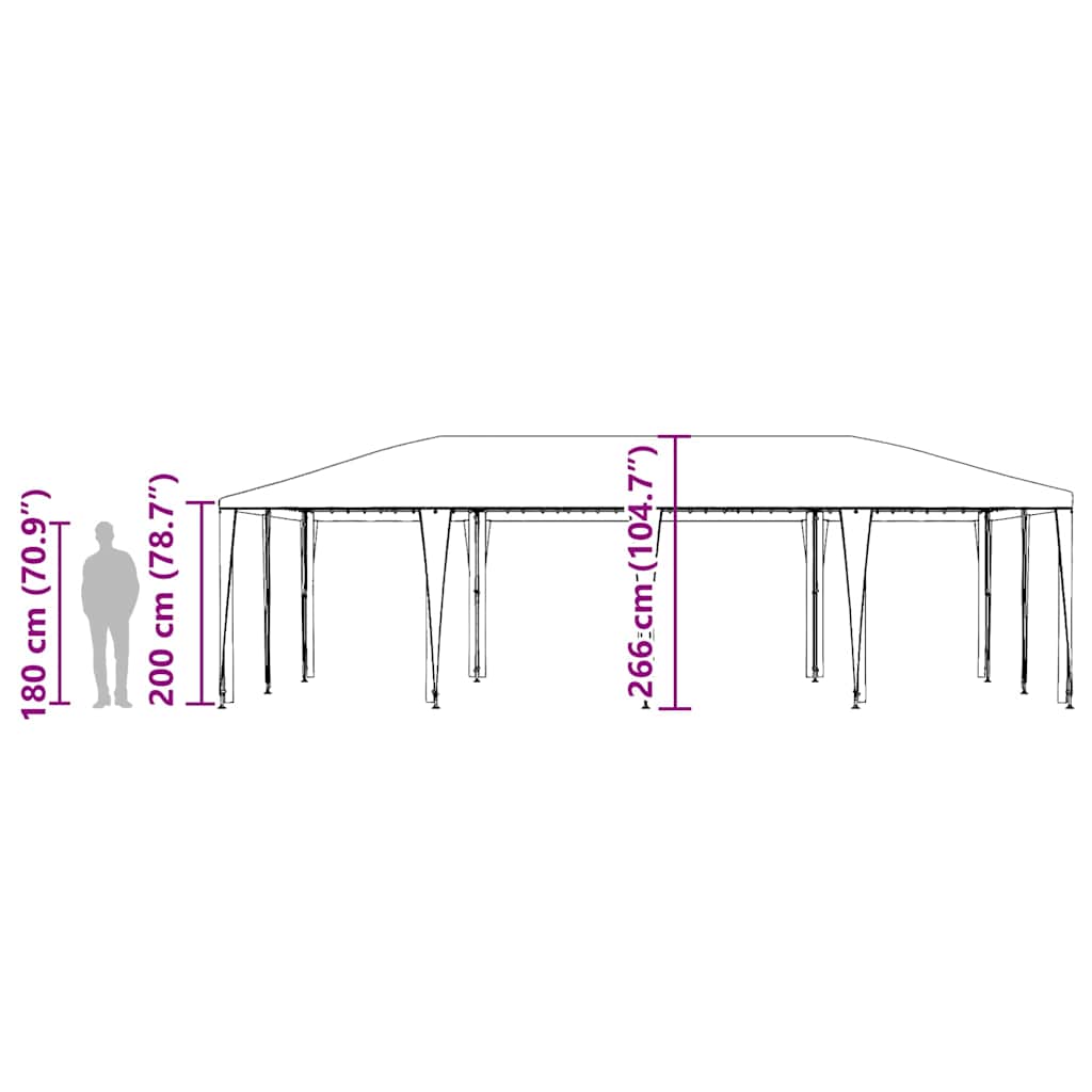 Das Party-Zelt ist genau das, was du für deine Outdoor-Veranstaltungen brauchst. Viel Platz und ein moderner Look, der super auf jeden Balkon oder Terrasse passt. Die schicke anthrazit Farbe macht es perfekt für Essen, Feiern oder chillige Treffen. Geräumiges Erlebnis: Mit 400 x 800 cm ist dieses Zelt perfekt für 8 Personen, die einfach mal Spaß haben möchten. Ideal für Partys, Outdoor-Essen oder Familientreffen. Leicht und langlebig: Aus UV-beständigem Polyethylen und einem stabilen Stahlrahmen, bereit für jedes Wetter, ohne seine Form zu verlieren. Eine starke Bauweise, für viele Saisons. Einfache Montage: Dank des coolen Designs hast du es ruckzuck aufgebaut, bereit für den Spaß. Einfach zusammenzubauen, auch mit den nötigsten Werkzeugen. Vielseitige Nutzung im Freien: Eignet sich für alle Anlässe – ob lockere Feiern oder schicke Events – macht dieses Zelt jeden Outdoor-Moment besser. Praktisch für Camping oder Picknicks. Pflege und Wartung: Mit einer matten Oberfläche, die Schmutz kaschiert, ist das Zelt einfach zu reinigen. Vermeide aggressive Reiniger und nutze eine Abdeckung, wenn es nicht genutzt wird.