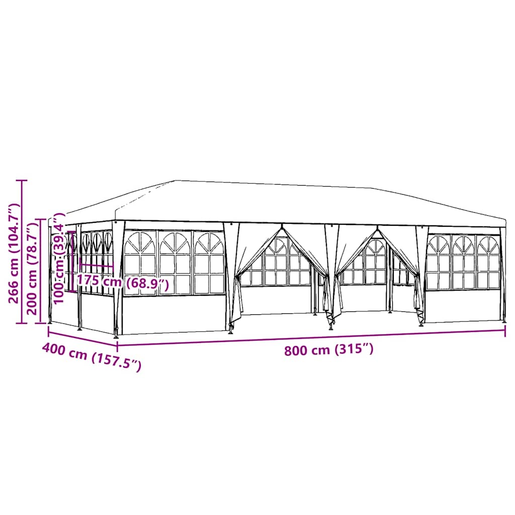 Dieses Partyzelt ist super für Outdoor-Events. Es bietet viel Platz, um bequem bis zu 12 Personen unterzubringen. Mit seinem strahlend grünen Design wird jeder Garten, jede Terrasse oder jeder Balkon zu einem einladenden Treffpunkt – perfekt für Buffets oder Feiern. Geräumige Anordnung: Mit 400 x 800 cm bietet dieses Zelt viel Platz für Gäste, sodass sie sich frei bewegen können und gleichzeitig Essen und Getränke genießen. Perfekt für fröhliche Outdoor-Gatherings. Langlebiges Material: Aus wasserdichtem Polyethylen, schützt dieses Partyzelt vor plötzlichen Wetterumschwüngen. Der stabile Stahlrahmen sorgt für Sicherheit. Einfacher Aufbau: Das Zelt kommt mit allem nötigen Zubehör wie Bodenankern und Seilen, sodass es für zwei Personen leicht einfach aufzubauen ist. Das bedeutet, du kannst es schnell aufstellen, wo es gebraucht wird. Vielseitige Nutzung: Ideal für Hochzeiten, Festivals und Gartenpartys; praktisch und schick, bringt es die richtige Stimmung für dein Event. Modernes Design: Mit seinem minimalistischen Stil passt es gut in verschiedene Außenbereiche und sorgt für einen stilvollen Look bei jedem Fest.