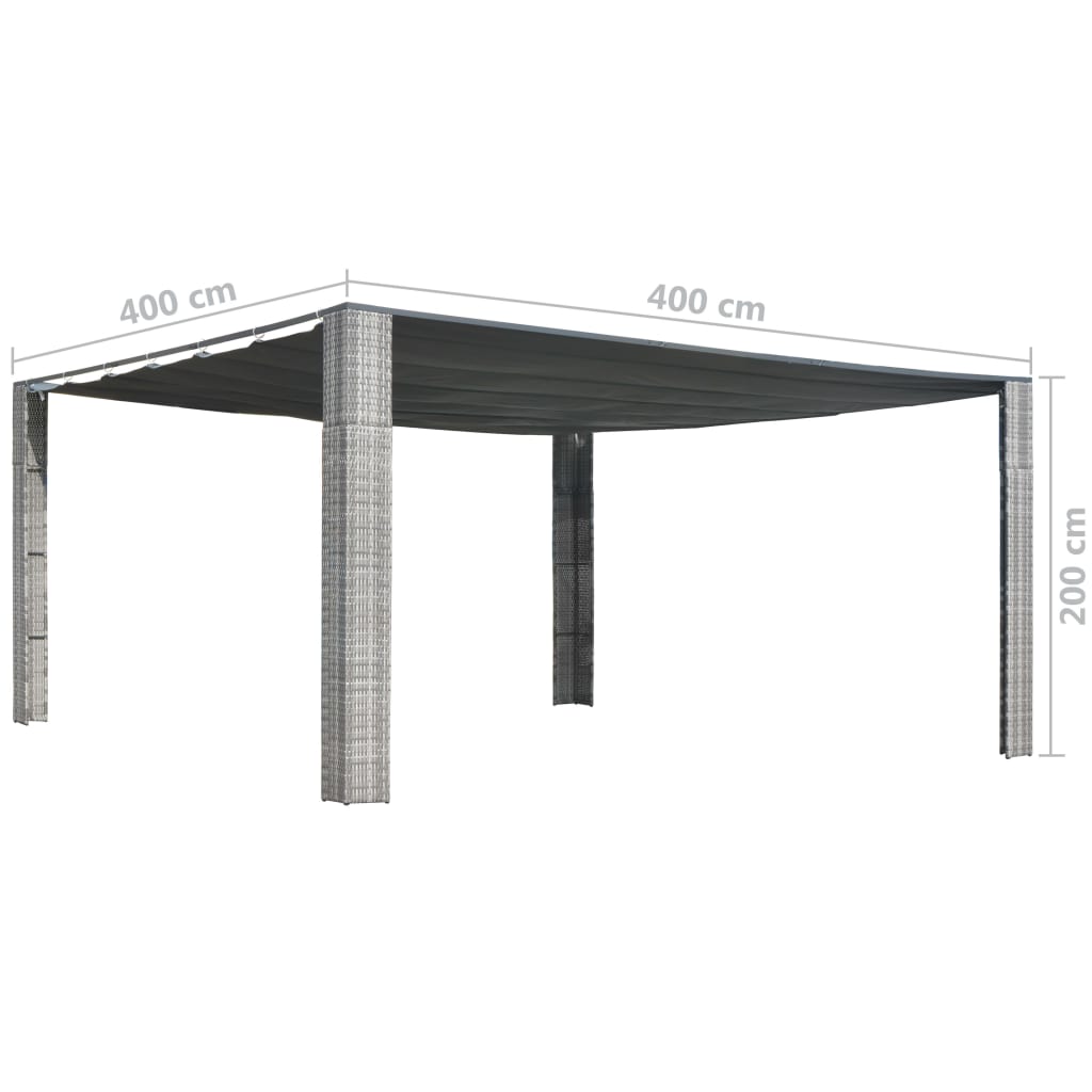 Pavillon mit Schiebedach Poly Rattan 400x400x200 cm Grau