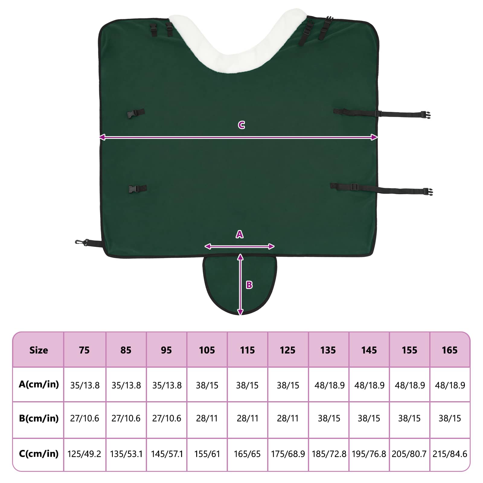 Diese Pferdedecke wurde so gemacht, dass sie bei kaltem Wetter Wärme und Schutz bietet. Ihr modernes Design mit klaren Linien und weniger Schnickschnack verbindet Funktionalität und gutes Aussehen. Ob an kalten Wintertagen oder nach einem langen Arbeitstag, dein Pferd bleibt in dieser Fleece-Decke bequem und warm. Das praktische Design macht sie vielseitig einsetzbar und sorgt dafür, dass sie für Wärme und Stil sorgt. Qualität Polarfleece: Hergestellt aus hochwertigem Polarfleece, bietet diese Decke warme und weiche Vorteile. Das Fleece ist leicht und erlaubt deinem Pferd, sich frei zu bewegen. Selbst an den kältesten Mittwintertagen bleibt es warm, perfekt für draußen. Funktionale Schnallen: Verstellbare Schnallen sorgen für einen perfekten Sitz, der sich jeder Pferdegröße anpasst. Der enge Sitz sorgt für Sicherheit und Komfort, sodass die Decke nicht verrutscht, egal wie dein Pferd sich bewegt. Das gibt dir ein sicheres Gefühl, wenn dein Pferd draußen ist. Vielseitiges Bezugdesign: Mit einem abnehmbaren Bezug ist die Decke easy zu reinigen. Der Bezug lässt sich einfach abnehmen und bei 30 Grad waschen, damit er frisch bleibt. So hast du mehr Zeit für dein Pferd und weniger Aufwand für die Reinigung. Wettergeschützte Ausführung: Dank des winddichten Designs schützt die Decke vor schlechtem Wetter. Sie hält windigen Bedingungen stand und sorgt dafür, dass dein Pferd sich gut fühlt und geschützt bleibt. Diese Haltbarkeit garantiert, dass die Decke den ganzen Winter für dich da ist. Praktisches Aufbewahrungsmerkmal: Das zusammenklappbare Design ist perfekt, um die Decke platzsparend zu verstauen, wenn du sie nicht brauchst. Sie lässt sich schnell zusammenfalten und nimmt wenig Platz weg. Dieses Feature ist super für kleine Räume, damit die Decke immer bereit ist, wenn es kalt wird.