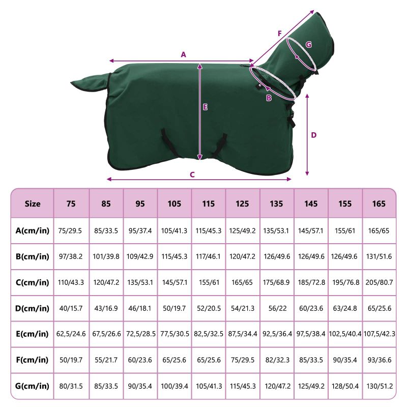 Die Pferdedecke verbindet modernes Design mit praktischer Funktionalität, damit dein Pferd auch während der kalten Wintermonate warm und gemütlich bleibt. Hergestellt aus robustem Polyester, fühlt sie sich super weich an und bringt einen Hauch Luxus mit. Mit einem eleganten, schlichten Look ist diese Decke perfekt für den Außenbereich, sodass dein Pferd seine Umgebung ohne Unbehagen genießen kann. Die enge Passform sorgt dafür, dass dein Pferd sich wohlfühlt und macht diese Decke zur idealen Ergänzung für seine Wintergarderobe. Materialdetails: Die Decke besteht aus Polyester, das für seine Langlebigkeit und Widerstandsfähigkeit gegen äußere Bedingungen bekannt ist. Die samtige Oberfläche macht sie nicht nur gemütlich, sondern lässt auch dein Pferd warm bleiben, ohne dass es dabei kratzt oder stört. Abnehmbarer Bezug: Der abnehmbare Bezug macht die Reinigung kinderleicht. Einfach abnehmen und bei 30 Grad in die Waschmaschine – so bleibt die Decke immer frisch! Verstellbare Funktionen: Die verstellbaren Teile sorgen für eine individuelle und bequeme Passform, angepasst auf die Größe und Bedürfnisse deines Pferdes. So bleibt es warm und die kalte Luft hat keine Chance. Winteressentials: Diese Decke ist genau für den Winter gemacht. Sie hält dein Pferd bei kühlen Temperaturen warm und bietet die nötige Isolation, damit es sich wohlfühlt. Einfache Pflege: Das Material ist maschinenwaschbar und lässt sich leicht reinigen, was die Pflege zum Kinderspiel macht. So bleibt die Decke immer hygienisch und sorgt für den Komfort deines Pferdes.