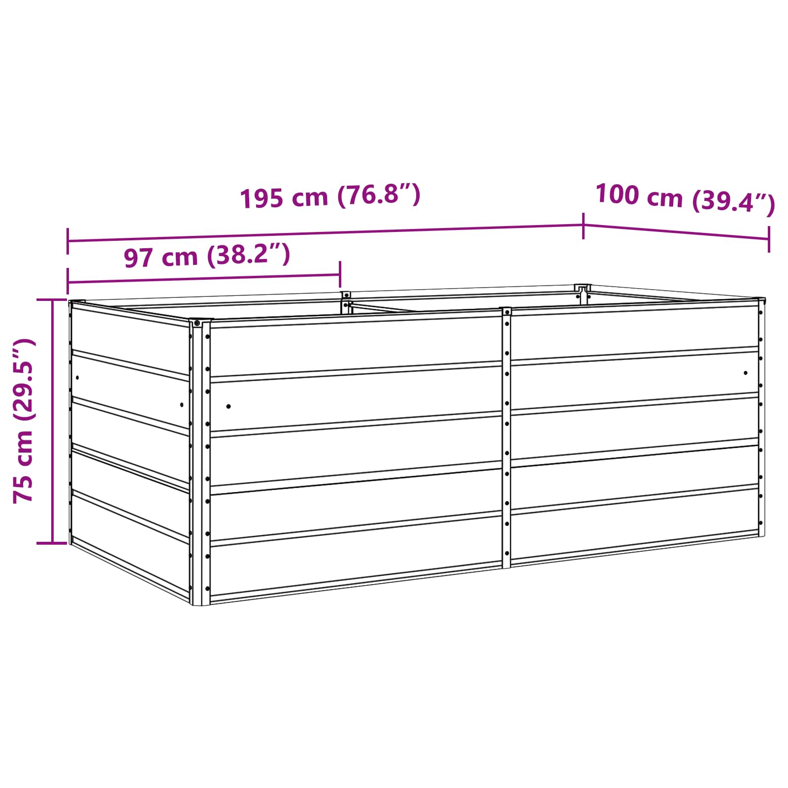 - Gesamtabmessungen: 195 x 100 x 75 cm (L x B x H)