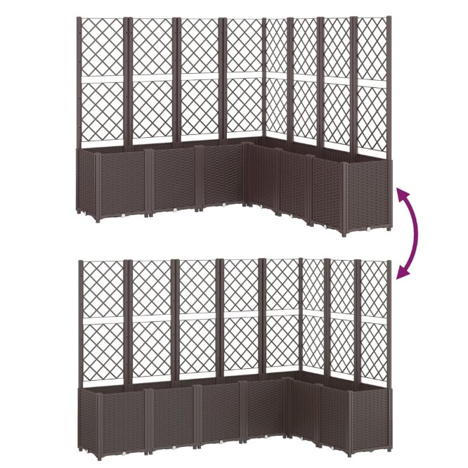 Dieser Blumenkübel mit Spalier ist eine ausgezeichnete Wahl für Kletterpflanzen in Ihrem Garten oder auf der Terrasse. Langlebiges Material: Polypropylen ist ein beliebter Kunststoff, der bei der Herstellung von Gartenmöbeln häufig verwendet wird. Er ist leicht, robust und stoßfest.Großzügiges Fassungsvermögen: Der Pflanzkübel bietet viel Platz für den Anbau von Gemüse, Blumen und anderen Pflanzen.Praktisches Design: Die ideale Bodenschicht bewahrt die Feuchtigkeit und ermöglicht eine leichte Drainage. Zudem bietet das integrierte Spalier eine großartige Rankhilfe für Kletterpflanzen wie Tomaten, Erbsen und Rosen.Modulares Design: Dieses Pflanzgefäß besteht aus 7 Pflanzkästen, die sich je nach Bedarf frei miteinander kombinieren lassen.Ansprechende Rattan-Optik: Mit seiner ansprechenden Rattan-Optik verleiht der Pflanzkübel deinem Außenbereich eine elegante Note.