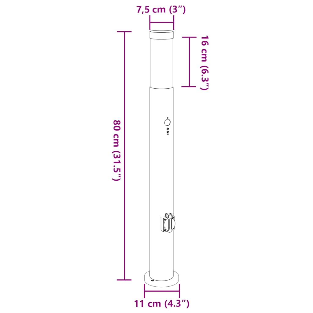 Verschönern Sie Ihren Außenbereich mit dieser eleganten und funktionalen Pollerleuchte! Langlebiges Material mit IP44-Schutzart: Diese Außenstehleuchte aus Edelstahl mit IP44-Schutzart ist robust, wetterbeständig und perfekt für den langfristigen Einsatz im Freien.PIR-Bewegungssensor: Die Außenstehleuchte ist mit einem integrierten PIR-Bewegungssensor (Passiv-Infrarot) ausgestattet, der einen Erfassungswinkel von 120° und eine effektive Reichweite von 5-8 Metern bietet. Sie können sowohl die Helligkeitsempfindlichkeit als auch die Leuchtdauer einstellen und eine Relaiszeit zwischen 10 Sekunden und 5 Minuten auswählen. Das Licht schaltet sich automatisch ein, wenn eine Bewegung erkannt wird.Integrierte Steckdose: Die Gartenstehleuchte verfügt über eine integrierte Steckdose, an die Sie problemlos andere Außengeräte anschließen können. Genießen Sie einfachen Zugang zu Strom für Ihre festliche Beleuchtung, Telefonladegeräte oder andere wichtige Dinge in Ihrem Garten.Mit Diffusor: Die Außenstehleuchte wird mit einem Kunststoffdiffusor geliefert, der die Lichtquelle vor Elementen wie Staub, Wasser und Schmutz schützt und gleichzeitig für eine gleichmäßige und diffuse Lichtabgabe sorgt.Vielseitigkeit: Die stilvolle Terrassenstehleuchte eignet sich perfekt für verschiedene Außenbeleuchtungsanwendungen. Beleuchten Sie damit Ihren Garten, Ihre Terrasse, Ihren Weg, Ihre Einfahrt oder Ihre Veranda und verschönern Sie gleichzeitig Ihre Außendekoration.