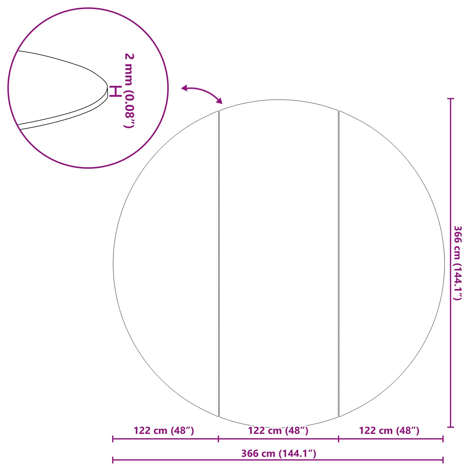 - Abmessungen: 119 x 131 x 1 cm (B x L x H)
