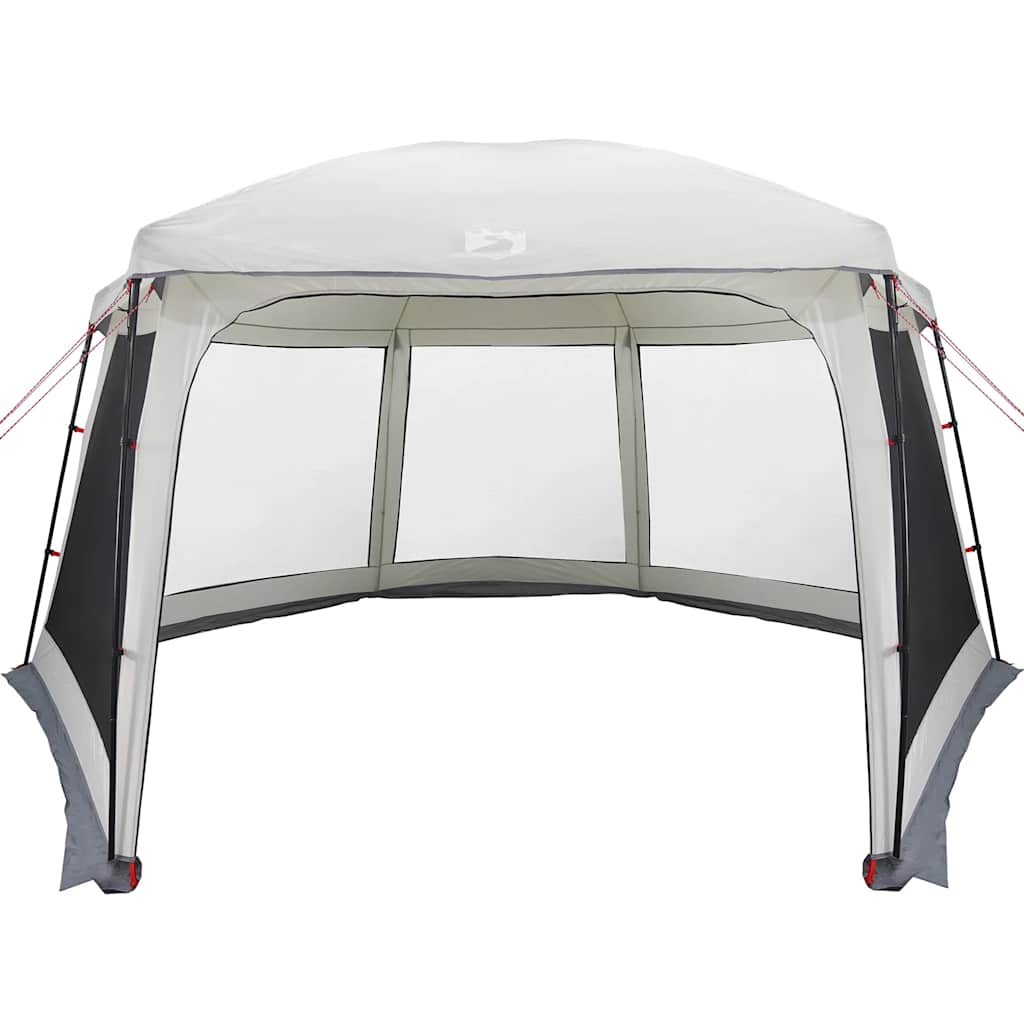 Dieses Poolzelt schützt dich vor Regen und Sonne und sorgt für ein angenehmes Badeerlebnis. Wasserdicht: Das aus Polyester mit PU-Beschichtung gefertigte und mit einer Bodenplane ausgestattete Pool-Zelt ist wasser- und winddicht, bietet Schutz und hält dich trocken und bequem, während du dich im Zelt entspannst.Multifunktionales Zelt: Dieses Zelt bietet Schutz für den Swimmingpool und erfüllt gleichzeitig eine Vielzahl von Bedürfnissen wie Familiencamping, Picknicks, Partys, Mahlzeiten im Freien und vieles mehr.Gute Belüftung und Insektenschutz: Die Netzwände bieten nicht nur eine hervorragende Belüftung, sondern halten auch Insekten effektiv fern, um den Benutzern ein komfortables und insektenfreies Erlebnis zu bieten.Abnehmbares Überzelt: Das abnehmbare Überzelt lässt sich an der Zeltoberseite befestigen, um Wetterschutz zu bieten und Privatsphäre zu schaffen.Leicht und tragbar: Dank des faltbaren und leichten Designs lässt sich das Zelt einfach verpacken und in der mitgelieferten Tragetasche mühelos verstauen und transportieren. Achtung:Halte alle Flammen und Wärmequellen von diesem Zeltstoff fern.