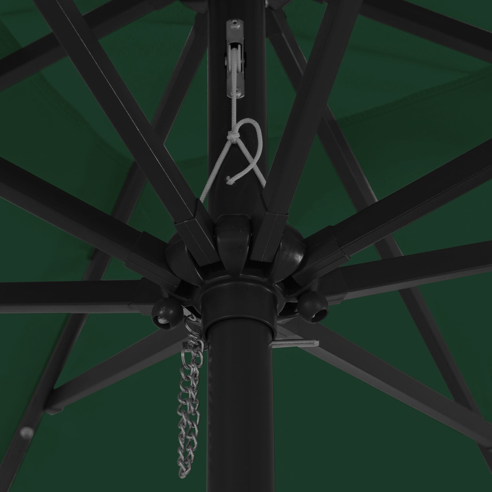 Der Terrassenschirm ist 249 cm hoch und bietet jede Menge Schatten für den Außenbereich. Ideal für Gärten und Terrassen. Sein modernes Design in lebhaftem Grün passt perfekt zu jedem Außenbereich und schafft gemütliche Plätze für Familientreffen oder entspannte Momente. Der höhenverstellbare Schirm macht es super einfach, den Schatten je nach Sonnenstand anzupassen, sodass du immer einen gemütlichen Platz findest, egal ob beim Essen oder Entspannen im Freien. Das UV-resistente Gewebe schützt vor schädlichen Strahlen und verlangsamt das Verblassen der Farben, was ihn zur soliden Wahl für deine Outdoor-Bereiche macht. Mit dem neigbaren Design kannst du den Schirmwinkel anpassen, um die Sonne tagsüber abzudecken und immer im Schatten zu bleiben. Durch die einfache Kurbelmechanik öffnest und schließt du den Schirm schnell und problemlos, was den Aufbau deines Außenbereichs bequem macht. Dieser große Schirm bietet den nötigen Schutz für Tische oder Sitzbereiche mit tollen 300 cm Breite, ideal für Partys oder um einfach die sonnigen Stunden zu genießen.