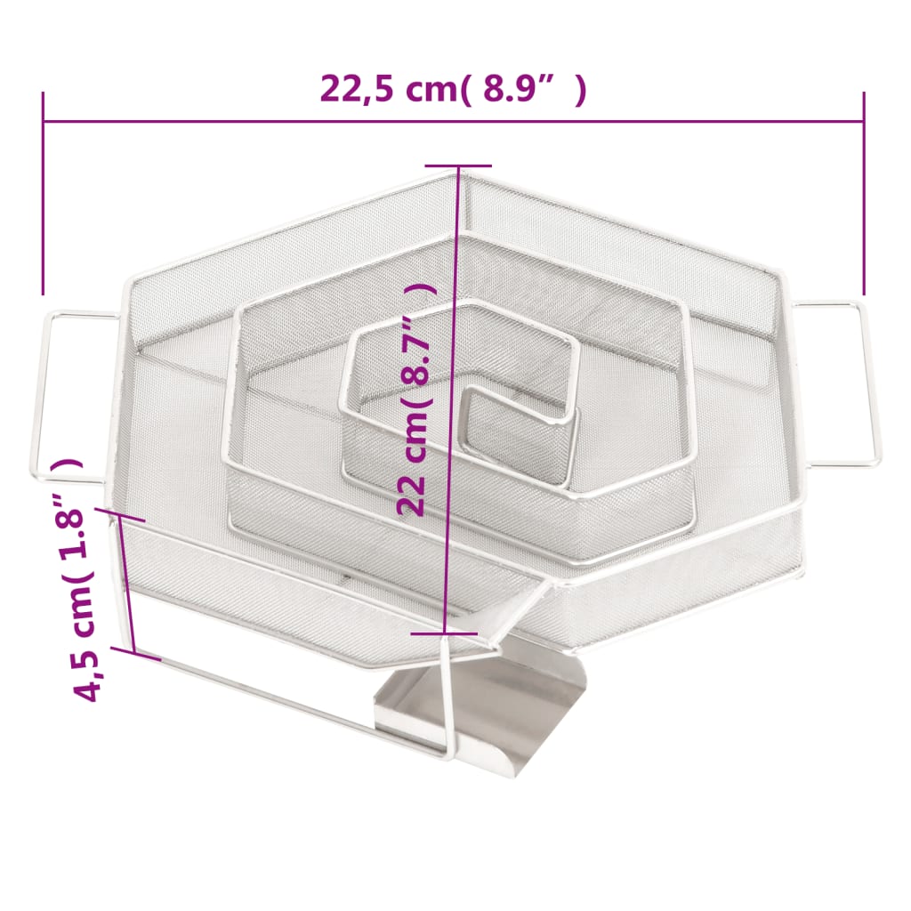 Mit diesem multifunktionalen Räucherofen mit Holzspänen und Kaltrauchgenerator kannst du ein Festmahl zubereiten und eine gemütliche Zeit im Freien mit deiner Familie genießen! Langlebiges Material: Stahl ist ein außergewöhnlich hartes und starkes Material. Er bietet Robustheit und Stabilität. Die Verzinkung bietet einen besseren Schutz gegen Rost und ist für Produkte geeignet, die im Freien verwendet werden.Viel Platz zum Räuchern: Der Outdoor-Smoker bietet viel Platz zum Räuchern von Fleisch, Fisch, Würstchen und mehr. Die mitgelieferten S-förmigen Haken und Roste erleichtern die Zubereitung der Speisen.Mit Thermometer: Der Räucherofen ist mit einem Thermometer ausgestattet, um beste Ergebnisse zu erzielen.Kaltrauchgenerator: Fülle ihn einfach mit Sägemehl und zünde ihn mit einem Teelicht an, bis das Sägemehl anfängt, seine Farbe zu wechseln. Danach kann das Teelicht entfernt und der Kaltraucherzeuger in den Räucherschrank gelegt werden. Dank des sechseckigen, kompakten Gitters brennen die Räucherspäne für bis zu 8 Stunden gleichmäßig und langsam ab. Achtung:Der Grill darf nicht in geschlossenen und/oder bewohnbaren Bereichen wie Häusern, Zelten, Wohnwagen, Wohnmobilen und Booten verwendet werden. Ansonsten besteht die Gefahr einer Kohlenmonoxidvergiftung, die zum Tod führen kann.