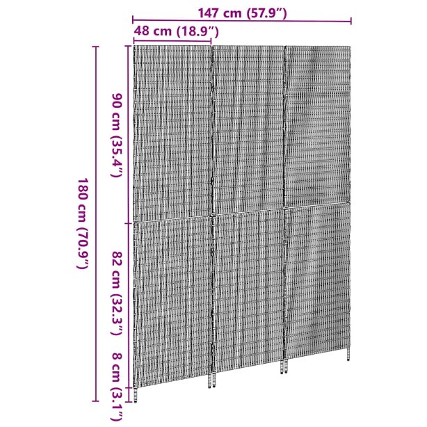 Dieser Poly-Rattan Falt-Raumteiler ist die ideale Lösung, um in deinem Zuhause Räume elegant und einfach zu unterteilen. Das moderne Design aus Poly-Rattan bringt einen Hauch von Stil und bleibt dabei funktional und ansprechend. Perfekt für Wohnzimmer, verwandelt er offene Bereiche in gemütliche Rückzugsorte mit seiner schicken rechteckigen Form und der matten Oberfläche. Seine faltbare Konstruktion macht ihn super flexibel – perfekt, wenn du einfach mal umräumen willst. Poly-Rattan Struktur Der Raumteiler ist aus langlebigem Poly-Rattan gefertigt, bietet eine moderne, geflochtene Optik und bleibt dabei UV-beständig. Das Material ist stark und sieht gleichzeitig super aus. So hast du das Feeling von natürlichen Fasern, ohne die Abnutzung, die man normalerweise hat. Faltmechanismus Das faltbare Design macht die Lagerung super easy. Klapp ihn einfach zusammen, wenn du ihn nicht brauchst, perfekt für alle, die flexible Lösungen suchen. So bleibt der Boden schön frei und das macht ihn ideal für kleine Wohnungen. Matte, nicht reflektierende Oberfläche Die matte Oberfläche sorgt für einen schicken Look und vermeidet unangenehmes Blitzen. Diese Eigenschaften fügen eine subtile Eleganz hinzu, wobei er problemlos in jedes moderne Design passt. Manuelle Anpassung Du kannst den Raumteiler manuell anpassen, ganz ohne Werkzeug. Verschiebe die Paneele einfach nach deinen Wünschen. Diese einfache Handhabung macht ihn besonders benutzerfreundlich. Einfache Montage Du kannst ihn mit einem Schraubendreher schnell aufstellen – keine komplizierten Schritte nötig! Ideal, um ihn schnell einsatzbereit zu machen. Der Aufbau ist auch mit zwei Personen total entspannt und braucht keine speziellen Werkzeuge.