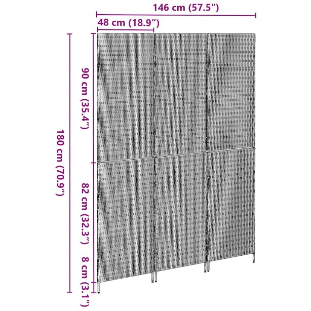 Dieser Poly-Rattan Falt-Raumteiler ist die ideale Lösung, um in deinem Zuhause Räume elegant und einfach zu unterteilen. Das moderne Design aus Poly-Rattan bringt einen Hauch von Stil und bleibt dabei funktional und ansprechend. Perfekt für Wohnzimmer, verwandelt er offene Bereiche in gemütliche Rückzugsorte mit seiner schicken rechteckigen Form und der matten Oberfläche. Seine faltbare Konstruktion macht ihn super flexibel – perfekt, wenn du einfach mal umräumen willst. Poly-Rattan Struktur Der Raumteiler ist aus langlebigem Poly-Rattan gefertigt, bietet eine moderne, geflochtene Optik und bleibt dabei UV-beständig. Das Material ist stark und sieht gleichzeitig super aus. So hast du das Feeling von natürlichen Fasern, ohne die Abnutzung, die man normalerweise hat. Faltmechanismus Das faltbare Design macht die Lagerung super easy. Klapp ihn einfach zusammen, wenn du ihn nicht brauchst, perfekt für alle, die flexible Lösungen suchen. So bleibt der Boden schön frei und das macht ihn ideal für kleine Wohnungen. Matte, nicht reflektierende Oberfläche Die matte Oberfläche sorgt für einen schicken Look und vermeidet unangenehmes Blitzen. Diese Eigenschaften fügen eine subtile Eleganz hinzu, wobei er problemlos in jedes moderne Design passt. Manuelle Anpassung Du kannst den Raumteiler manuell anpassen, ganz ohne Werkzeug. Verschiebe die Paneele einfach nach deinen Wünschen. Diese einfache Handhabung macht ihn besonders benutzerfreundlich. Einfache Montage Du kannst ihn mit einem Schraubendreher schnell aufstellen – keine komplizierten Schritte nötig! Ideal, um ihn schnell einsatzbereit zu machen. Der Aufbau ist auch mit zwei Personen total entspannt und braucht keine speziellen Werkzeuge.