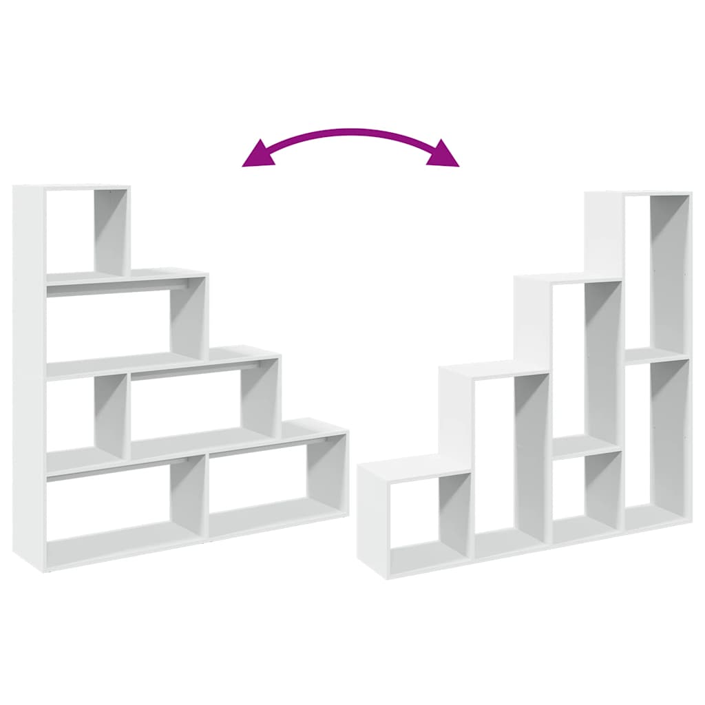 Es ist ein 4-Etagen-Bücherregal und Raumteiler zugleich. Dieses Möbelstück ist perfekt, um deinen Wohnraum mit Stil zu organisieren!Starkes und langlebiges Material: Holzwerkstoff ist ein langlebiges und robustes Material mit einer glatten Oberfläche, das gegen Feuchtigkeit, Verformung und Rissbildung beständig ist; dadurch ist es eine zuverlässige Wahl für die Herstellung von Möbeln.Reichlich Stauraum: Das Bücherregal verfügt über Staufächer, in denen sich Bücher, Dekoartikel und andere Sachen ordentlich aufbewahren lassen.Flexible Aufstellungsmöglichkeiten: Das Regal kann sowohl in der Breite als auch in der Höhe auf den Boden gestellt werden und bietet so vielfältige Möglichkeiten der Raumgestaltung.Vielseitig einsetzbar: Das Regal kann auch als Raumteiler verwendet werden und passt problemlos zu jedem Einrichtungsstil. Es findet Platz im Wohnzimmer, um Dekoartikel zur Schau zu stellen, im Büro, um Bücher und Unterlagen zu verstauen, im Schlafzimmer, um Alltagssachen aufzubewahren, oder im Keller, um Haushaltssachen zu lagern.Pflegeleicht: Dank seiner glatten Oberfläche lässt sich der Bücherregal-Raumteiler mit einem feuchten Tuch leicht reinigen und erfordert wenig Pflege.Achtung:Um ein Umkippen zu vermeiden, sollte dieses Produkt mit der mitgelieferten Wandhalterung gesichert werden.Gut zu wissen:Schrauben und Dübel sind für die Befestigung an der Wand nicht im Lieferumfang enthalten. Wir empfehlen dir, speziell für deine Wände geeignete Schrauben und Dübel zu finden und zu verwenden. Im Zweifelsfall wende dich an einen Fachmann. Bitte lese und befolge jeden Schritt der Anweisungen.