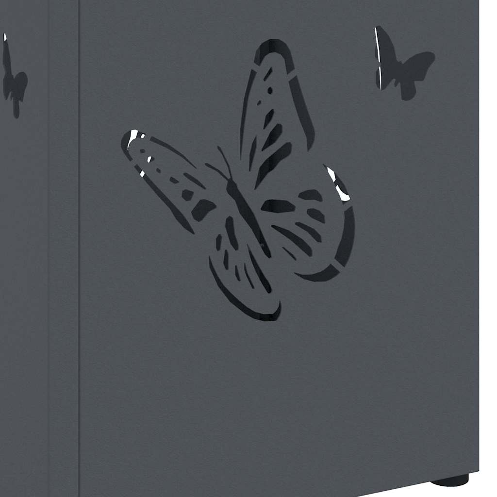 Dieser Regenschirmständer ist eine stylische Ergänzung für jeden Flur. Sein hübsches anthrazitfarbenes Finish verbessert nicht nur das Aussehen, sondern bietet auch praktische Nutzung. Er wurde dafür gemacht, Regenschirme aller Größen zu halten und deinen Eingangsbereich ordentlich zu halten. Die einzigartigen dekorativen Motive verleihen ein warmes und einladendes Gefühl. Stauraum: Hat ein Fach, das dir erlaubt, mehr als nur Regenschirme zu verstauen, und macht ihn so vielseitig für moderne Flure. Stylishes Design: Das anthrazitfarbene Finish und das geometrische Muster passen gut zu zeitgenössischem Dekor und verleihen jedem Raum einen schönen Touch. Platzsparend: Die rechteckige Form ist perfekt für enge Stellen, sodass du kleine Eingänge nutzen kannst, ohne sie zu überladen. Haltbarkeit: Aus hochwertigem Stahl gefertigt, ist dieser Regenschirmständer robust und hält täglichen Gebrauch stand, was dir eine langlebige Aufbewahrungslösung bietet. Einfache Reinigung: Das matte Finish braucht kaum Pflege, einfach mit einem feuchten Tuch abwischen, und es bleibt schick.