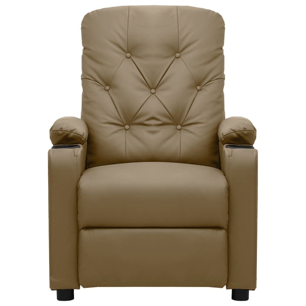 Lehne sich zurück und entspanne sich in diesem äußerst bequemen Relaxsessel! Manuelle Liegefunktion: Der Sessel kann manuell in 3 Positionen verstellt werden, so dass die Rückenlehne und der Fußteil je nach Bedarf eingestellt werden können.Bequemes Sitzerlebnis: Der dick gepolsterte Sitz, die Rückenlehne und die breiten, mit Kunstleder bezogenen Armlehnen sorgen für ein behagliches und angenehmes Sitzgefühl. Künstliches Leder ist ein äußerst langlebiges Material. Es ist schmutzabweisend und lässt sich mit einem feuchten Tuch einfach reinigen. Durch die glatte Oberfläche weist es die luxuriöse Schönheit von Echtleder auf.Solider und stabiler Rahmen: Der Rahmen aus Holz und Metall sorgt für eine solide Struktur und hohe Stabilität. Dieser TV-Sessel ist bequem und langlebig.