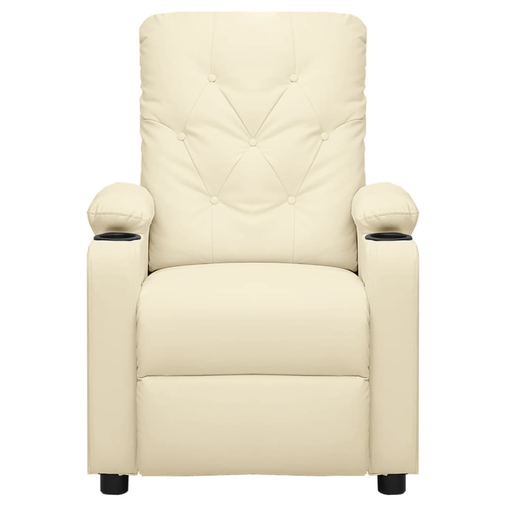 Lehne sich zurück und entspanne sich in diesem äußerst bequemen Relaxsessel! Manuelle Liegefunktion: Der Sessel kann manuell in 3 Positionen verstellt werden, so dass die Rückenlehne und der Fußteil je nach Bedarf eingestellt werden können.Bequemes Sitzerlebnis: Der dick gepolsterte Sitz, die Rückenlehne und die breiten, mit Kunstleder bezogenen Armlehnen sorgen für ein behagliches und angenehmes Sitzgefühl. Künstliches Leder ist ein äußerst langlebiges Material. Es ist schmutzabweisend und lässt sich mit einem feuchten Tuch einfach reinigen. Durch die glatte Oberfläche weist es die luxuriöse Schönheit von Echtleder auf.Solider und stabiler Rahmen: Der Rahmen aus Holz und Metall sorgt für eine solide Struktur und hohe Stabilität. Dieser TV-Sessel ist bequem und langlebig.