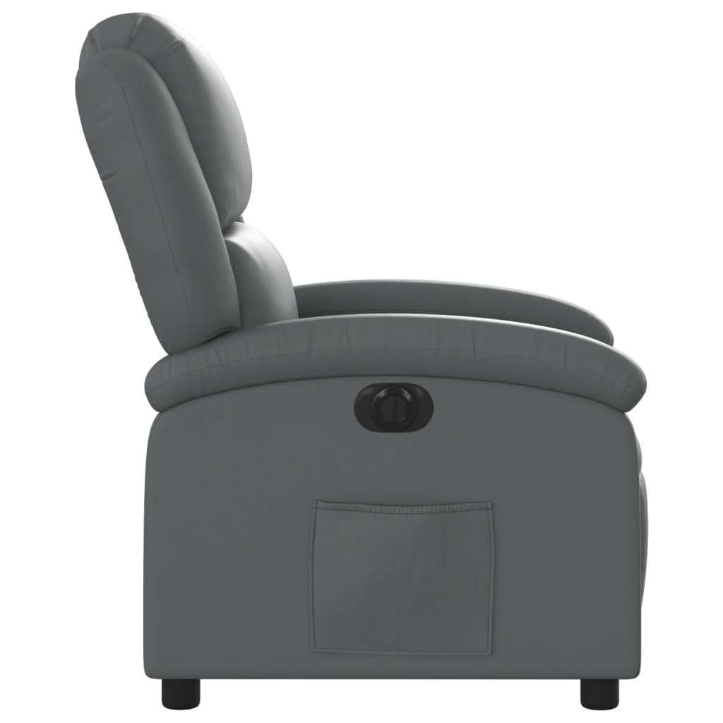 Lehne dich zurück und entspanne dich in diesem äußerst bequemen Fernsehsessel! Elektrische Liegefunktion: Dieser Relaxsessel ist mit einem Elektromotor ausgestattet, der Fußstütze und Rückenlehne durch einfaches Drücken des seitlichen Knopfes automatisch in jede gewünschte Position bringt. Diese Funktion ermöglicht eine maximale Neigung von 135 Grad. Darüber hinaus lässt sich die Rückenlehne auf Knopfdruck automatisch in die ursprünglichen Position zurückbringen.Bequemes Sitzerlebnis: Die dick gepolsterte Sitzfläche, die Rückenlehne und die breiten, mit Kunstleder bezogenen Armlehnen sorgen für ein behagliches und angenehmes Sitzgefühl. Kunstleder ist ein äußerst langlebiges Material. Es ist schmutzabweisend und lässt sich mit einem feuchten Tuch einfach reinigen. Durch die glatte Oberfläche weist es die luxuriöse Schönheit von Echtleder auf.Praktische Seitentasche: Dieser Sessel verfügt über eine Seitentasche, in der du wichtige Sachen griffbereit aufbewahren kannst.Solider und stabiler Rahmen: Der Rahmen aus Holz und Metall sorgt für eine solide Struktur und hohe Stabilität. Dieser TV-Sessel ist bequem und langlebig.