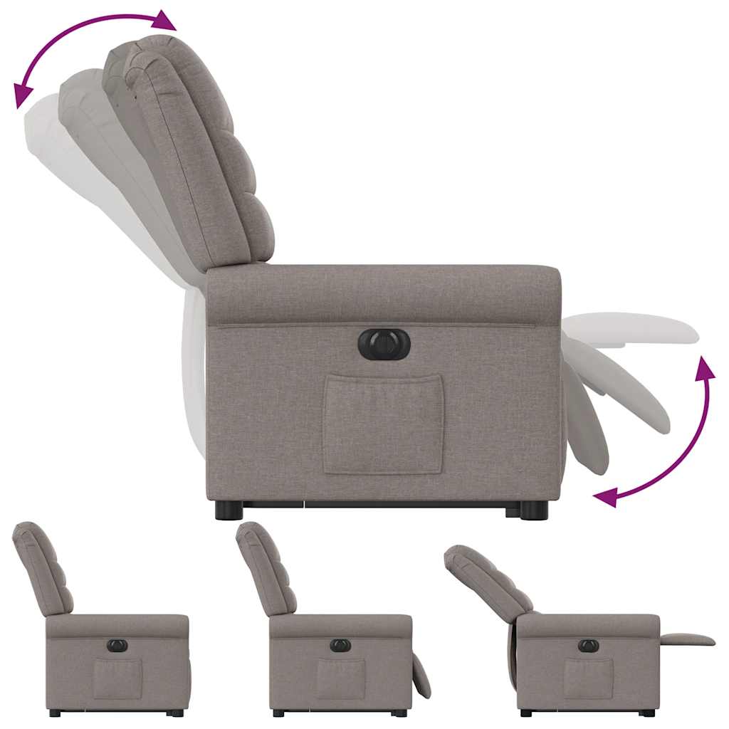 Lehne dich zurück und entspanne dich in diesem äußerst bequemen elektrischen Relaxsessel mit Aufstehhilfe! Elektrische Aufstehhilfe: Dieser Relaxsessel ist mit einem Elektromotor zum Anheben ausgestattet. Dank der Aufstehhilfe, die den gesamten Sessel nach oben bringt, kannst du ganz einfach auf Knopfdruck aufstehen, ohne deinen Rücken und deine Knie zu belasten.Elektrische Liegefunktion: Dieser Relaxsessel ist mit einem Elektromotor ausgestattet, der Fußstütze und Rückenlehne durch einfaches Drücken des seitlichen Knopfes automatisch in jede gewünschte Position bringt. Diese Funktion ermöglicht eine maximale Neigung von 135 Grad. Darüber hinaus lässt sich die Rückenlehne auf Knopfdruck automatisch in die ursprünglichen Position zurückbringen.Bequemes Sitzerlebnis: Die dick gepolsterte Sitzfläche, die Rückenlehne und die breiten Armlehnen sorgen für ein behagliches und wohliges Sitzgefühl. Der Bezug aus Stoff weist eine schlichte und saubere Optik auf und ist auch atmungsaktiv und langlebig.Praktische Seitentasche: Dieser Sessel verfügt über eine Seitentasche, in der du wichtige Sachen griffbereit aufbewahren kannst.Solider und stabiler Rahmen: Der Rahmen aus Holz und Metall sorgt für eine solide Struktur und hohe Stabilität. Dieser TV-Sessel ist bequem und langlebig.