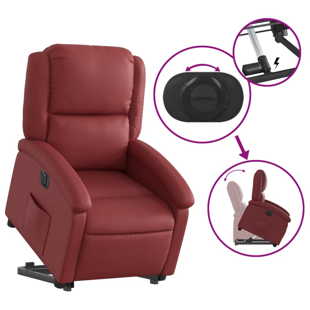 Lehne dich zurück und entspanne dich in diesem äußerst bequemen elektrischen Relaxsessel mit Aufstehhilfe! Elektrische Aufstehhilfe: Dieser Relaxsessel ist mit einem Elektromotor zum Anheben ausgestattet. Dank der Aufstehhilfe, die den gesamten Sessel nach oben bringt, kannst du ganz einfach auf Knopfdruck aufstehen, ohne deinen Rücken und deine Knie zu belasten.Elektrische Liegefunktion: Dieser Relaxsessel ist mit einem Elektromotor ausgestattet, der Fußstütze und Rückenlehne durch einfaches Drücken des seitlichen Knopfes automatisch in jede gewünschte Position bringt. Diese Funktion ermöglicht eine maximale Neigung von 135 Grad. Darüber hinaus lässt sich die Rückenlehne auf Knopfdruck automatisch in die ursprünglichen Position zurückbringen.Bequemes Sitzerlebnis: Die dick gepolsterte Sitzfläche, die Rückenlehne und die breiten, mit Kunstleder bezogenen Armlehnen sorgen für ein behagliches und angenehmes Sitzgefühl. Kunstleder ist ein äußerst langlebiges Material. Es ist schmutzabweisend und lässt sich mit einem feuchten Tuch einfach reinigen. Durch die glatte Oberfläche weist es die luxuriöse Schönheit von Echtleder auf.Praktische Seitentasche: Dieser Sessel verfügt über eine Seitentasche, in der du wichtige Sachen griffbereit aufbewahren kannst.Solider und stabiler Rahmen: Der Rahmen aus Holz und Metall sorgt für eine solide Struktur und hohe Stabilität. Dieser TV-Sessel ist bequem und langlebig.