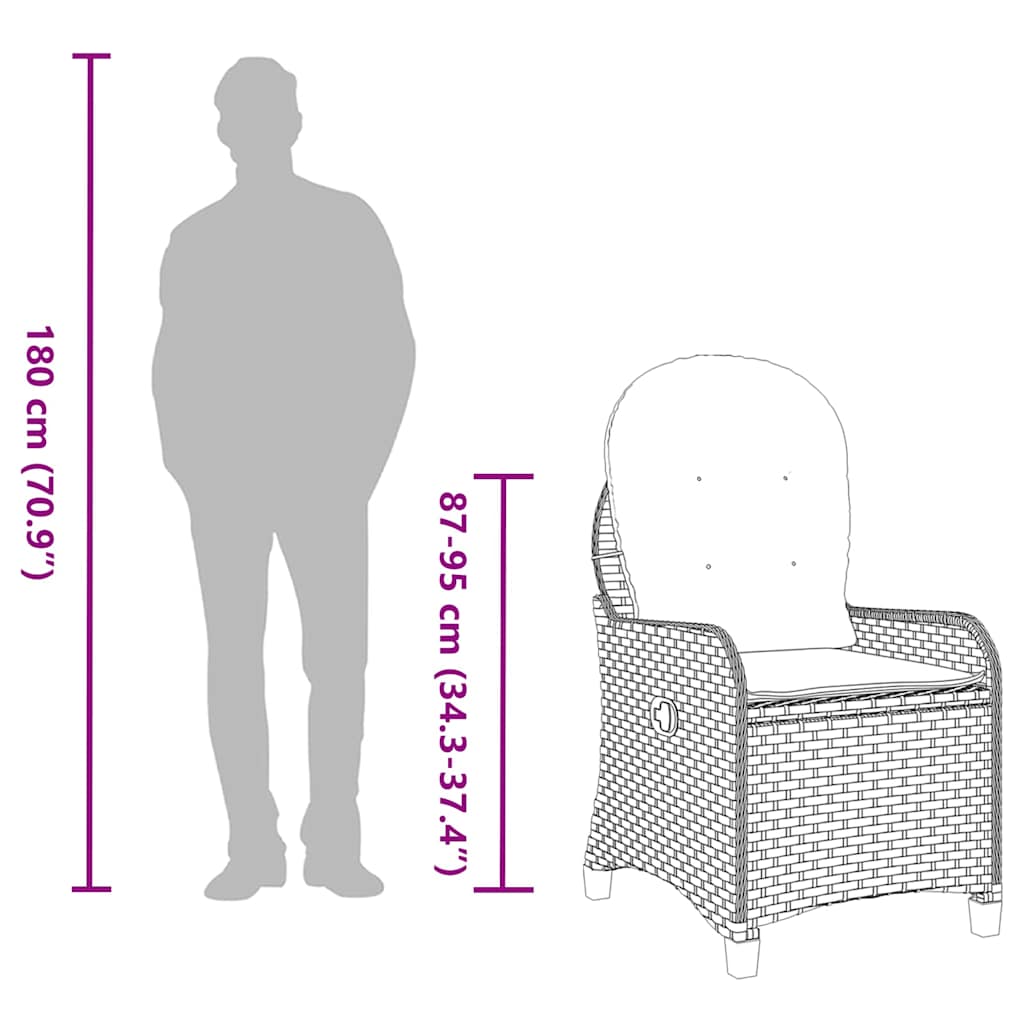 Der moderne Klappstuhl für draußen bringt Leben auf deine Terrasse oder deinen Balkon und sorgt für Stil und Gemütlichkeit beim Chillen. Mit seinem tollen Rattanrahmen und bequemen Polyesterkissen passt er super in jede Außenanlage. Er ist der perfekte Platz, um mit einem Buch zu entspannen oder Freunde unter den Sternen zu treffen. Verstellbare Armlehnen: Du kannst die Armlehnen einfach anpassen, um die perfekte Höhe für deinen Komfort zu finden. Ideal für faule Momente, wenn du zurücklehnen und chillen willst, denn sie geben dir den nötigen Halt. Stylishes Design: Mit seinem modernen Look und dem trendigen Geflecht wertet dieser Stuhl dein Außenambiente auf. Die schlichte graue Farbe bietet einen eleganten Hintergrund und passt perfekt zu verschiedenen Outdoor-Stilen. Wetterbeständige Materialien: Aus natürlichem Rattan und Polyester hergestellt, hält dieser Stuhl jedem Wetter stand. Für den Außenbereich gemacht, widersteht er dem Verblassen und der Abnutzung, sodass du ihn saisonal genießt, ohne dir um die Qualität Sorgen zu machen. Bequeme Polsterung: Jeder Stuhl kommt mit zwei weichen Kissen, die mit strapazierfähigem, wetterfestem Stoff bezogen sind. Sie sind super bequem für lange Chill-Tage im Freien und perfekt zum Lesen oder Quatschen mit Freunden. Kompakte Bauweise: Mit einer Höhe von 95 cm ist das kompakte Design ideal für kleinere Terrassen und Balkone. Und wenn du ihn nicht mehr brauchst, lässt sich der Stuhl ganz easy zum Verstauen zusammenklappen, was ihn super praktisch für jeden Außenbereich macht.