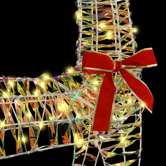 Dieser Rentier-Zugschlitten ist die perfekte Ergänzung für jede feierliche Umgebung. Er kombiniert modernes Design mit dem zeitlosen Charme von Weihnachten. Für alle, die den Weihnachtszauber lieben, bringt dieses auffällige Deko-Element Charakter und Wärme in jedes Zimmer, sei es Wohnzimmer, Flur oder Garten. Mit einem niedlichen Rentier, das einen Schlitten zieht, fängt es die Freude und Staunen der Feiertage perfekt ein. Die warm-weißen LED-Lichter strahlen sanft und harmonieren sowohl drinnen als auch draußen, während sie gleichzeitig Eleganz und festliche Stimmung zeigen. Ihr schlanker, moderner Stil ergänzt verschiedene Feiertagsthemen und bringt dabei einen zeitgemäßen Twist. Top Qualität: Mit flexiblen LED-Lichtern sorgt dieser Rentierschlitten für eine gemütliche Atmosphäre. Der warm-weiße Lichtton macht es perfekt für einladende Innenräume oder um Außendekorationen zu verschönern. Praktischer USB-Anschluss: Dank des eingebauten USB-Anschlusses ist die Stromversorgung dieser Figur einfach und flexibel. Damit kannst du sie nahe einer Steckdose oder einem anderen Ort platzieren, so wie es für dich am besten passt. Stylisches Design: Ihr modernes Design mit klaren Linien fügt sich spielend leicht in jede zeitgenössische Umgebung ein. Es kombiniert den traditionellen Feiertagscharme mit einem modernen Look. Platzsparend: Mit 54 x 19 x 120 cm passt sie super in verschiedene Bereiche, ohne überladen zu wirken, perfekt für alle, die den Platz optimal nutzen möchten. DIY-freundlich: Bastler werden die Möglichkeit lieben, diese Deko selbst zusammenzubauen und so eine persönliche Note in die Ausgestaltung zu bringen. Alle notwendigen Teile für einen reibungslosen Aufbau sind enthalten.