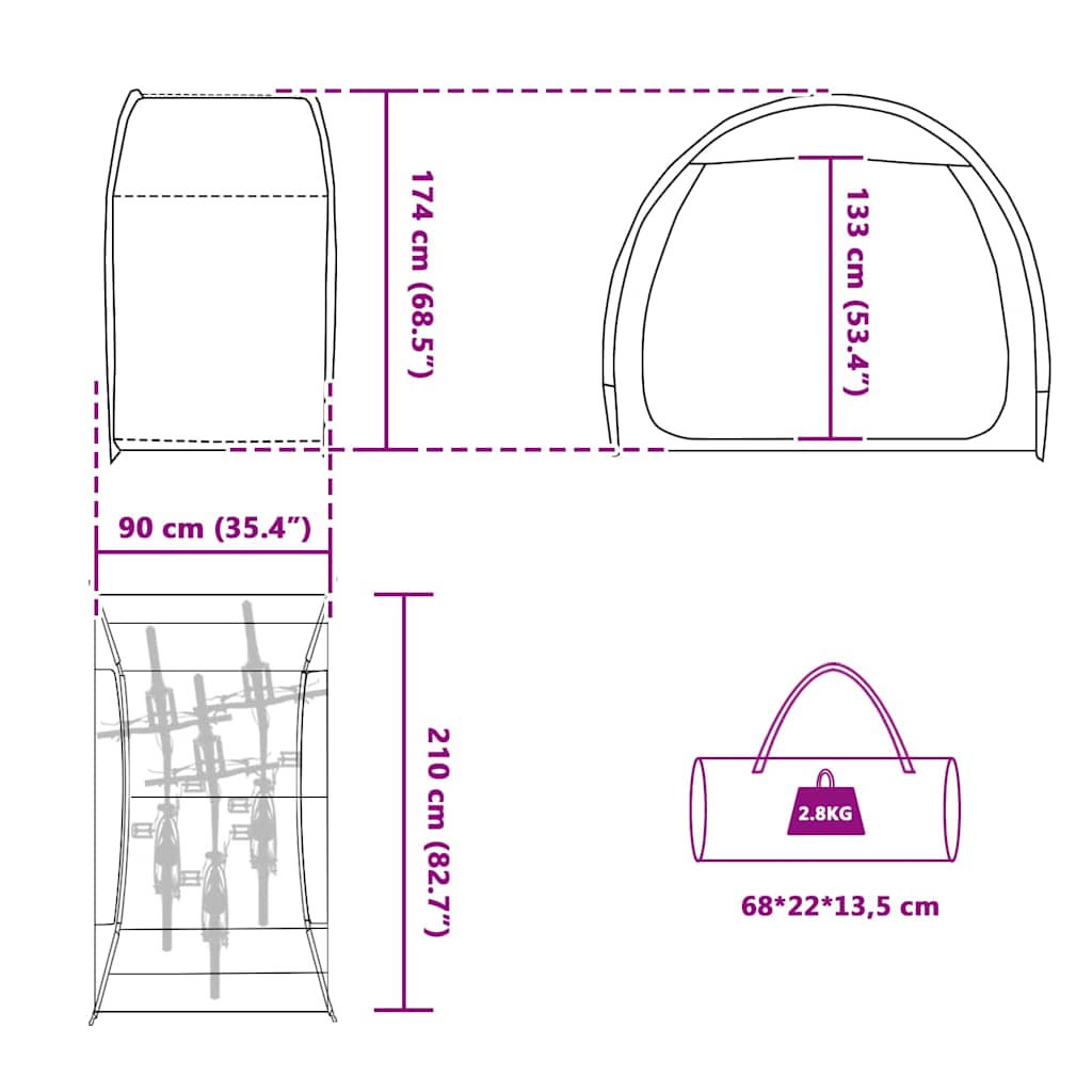 Dieses tragbare Fahrrad-Zelt ist die beste Wahl für alle, die das Radfahren und das Leben im Freien lieben, und macht es super easy, deine Fahrräder sicher zu lagern. Sein modernes Design passt zu allen, egal ob in der Stadt oder auf dem Land. Mit seiner runden und blickdichten Form brauchst du dir keine Sorgen zu machen, dass jemand spioniert. Es ist für Tragbarkeit und Robustheit gemacht, sodass dein Fahrrad bei jedem Wetter gut aussieht. Der smoothe Reißverschluss macht das Ein- und Aussteigen ganz einfach, und mit den Maßen von 210 x 90 x 174 cm ist genug Platz für durchschnittlich große Fahrräder. Egal, ob im Garten, auf einem Campingplatz oder in der Garage, dieses Fahrrad-Zelt kümmert sich super um deine Lagerbedürfnisse. Robuste Polyester-Konstruktion: Das Polyester-Material hält jedem Wetter stand, ohne an Stabilität oder Gefühl zu sparen. Verstärkt mit Fiberglas bleibt das Zelt bei Wind und Stößen stabil. Trotz seiner Robustheit hat es eine strukturierte Oberfläche, die dein Fahrrad vor Kratzern schützt. Komplettpaket: Das Fahrradzelt kommt mit zwei FRP-Stangen, fünf kleinen Stangen, vier Abspannleinen, acht Heringen und einer Tragetasche, damit du alles hast, um es aufzubauen. Es ist so konzipiert, dass es auch bei Wind stabil bleibt und alles drinnen sicher ist, selbst wenn das Wetter umschlägt. Wetterschutzmerkmale: Dieses Zelt wurde mit Blick auf Radfahrer entwickelt und hat wetterbeständige Eigenschaften, die es für alles bereit machen. Das wasserabweisende Polyester hat eine PU-Beschichtung für extra Schutz, damit das Innere schön trocken bleibt und deine Sachen sicher sind. Vielseitige Anwendung: Obwohl es hauptsächlich für Fahrräder gedacht ist, kann dieses geräumige Zelt auch für vieles andere verwendet werden. Es ist perfekt als temporärer Platz für Outdoor-Werkzeuge oder -Ausrüstung und passt sich leicht deinen Bedürfnissen an. Ideal für Kurztrips oder regelmäßige Nutzung im Garten, ist es ein unverzichtbarer Unterschlupf für deine wertvollen Utensilien. Einfache Pflege: Das Fahrradzelt frisch zu halten ist kinderleicht; wische es einfach mit einem feuchten Tuch ab, um Schmutz zu entfernen. Vermeide es, zu fest zu schrubben, da dies es schneller abnutzen könnte. Diese einfache Pflege hält es bereit für jeden Einsatz.