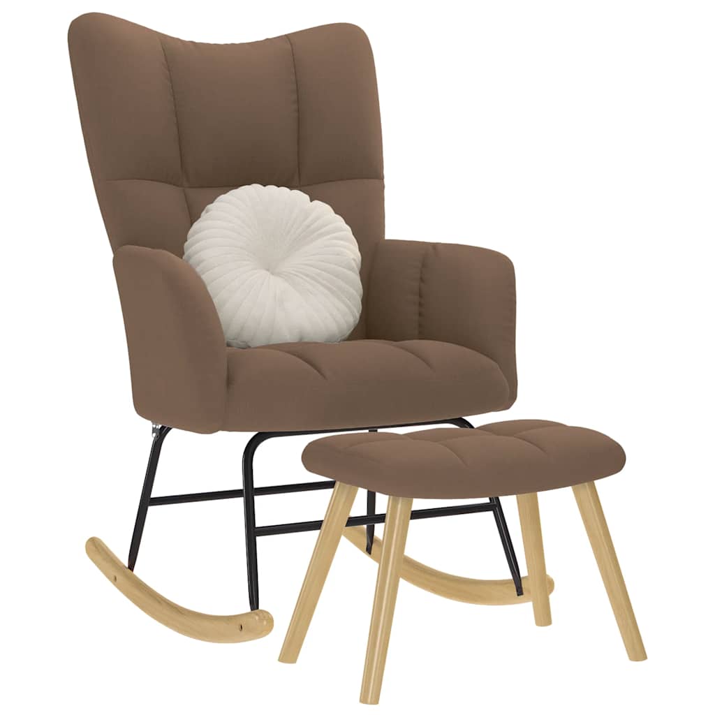 Suchen Sie nach einem Stuhl, in dem Sie sich nach einem anstrengenden Tag vollkommen entspannen können? Dieser bequeme Schaukelstuhl mit Fußhocker ist die perfekte Wahl! Weiches und strapazierfähiges Material: Polyestergewebe fühlt sich weich an, ist atmungsaktiv sowie strapazierfähig und sorgt so für höchsten Komfort und Behaglichkeit.Stabiles und stabiles Gestell: Der Rahmen aus Holz und Metall sorgt für Robustheit und Stabilität.Komfortables Sitzgefühl: Der Sessel kommt mit der dick gepolsterten Sitz- und Rückenlehne sowie Armlehnen für hohen Komfort.Sanfte und sanfte Schaukelbewegung: Der Schaukelstuhl bietet eine sanfte, sanfte Schaukelbewegung, die eine beruhigende Wirkung erzeugt, die Ihnen hilft, sich zu entspannen.Vielseitiger Fußhocker: Der Hocker ist vielseitig einsetzbar und dient als bequeme Fußstütze, wenn Sie sich auf dem Stuhl zurücklehnen, oder als zusätzlicher Sitz.