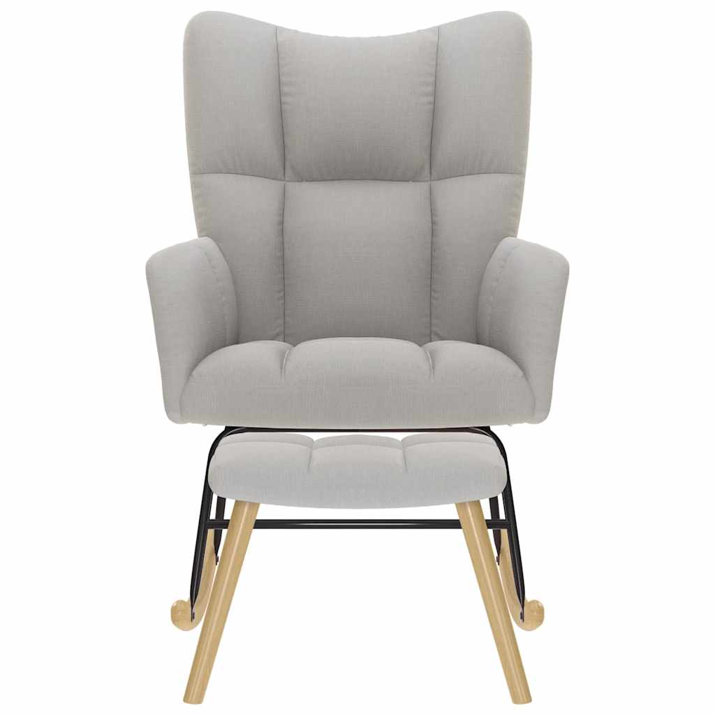 Suchen Sie nach einem Stuhl, in dem Sie sich nach einem anstrengenden Tag vollkommen entspannen können? Dieser bequeme Schaukelstuhl mit Fußhocker ist die perfekte Wahl! Weiches und strapazierfähiges Material: Polyestergewebe fühlt sich weich an, ist atmungsaktiv sowie strapazierfähig und sorgt so für höchsten Komfort und Behaglichkeit.Stabiles und stabiles Gestell: Der Rahmen aus Holz und Metall sorgt für Robustheit und Stabilität.Komfortables Sitzgefühl: Der Sessel kommt mit der dick gepolsterten Sitz- und Rückenlehne sowie Armlehnen für hohen Komfort.Sanfte und sanfte Schaukelbewegung: Der Schaukelstuhl bietet eine sanfte, sanfte Schaukelbewegung, die eine beruhigende Wirkung erzeugt, die Ihnen hilft, sich zu entspannen.Vielseitiger Fußhocker: Der Hocker ist vielseitig einsetzbar und dient als bequeme Fußstütze, wenn Sie sich auf dem Stuhl zurücklehnen, oder als zusätzlicher Sitz.