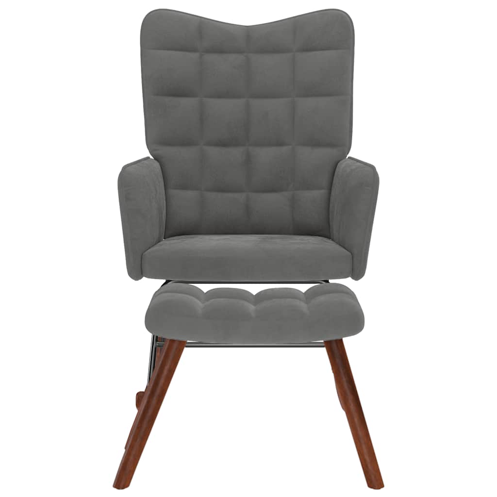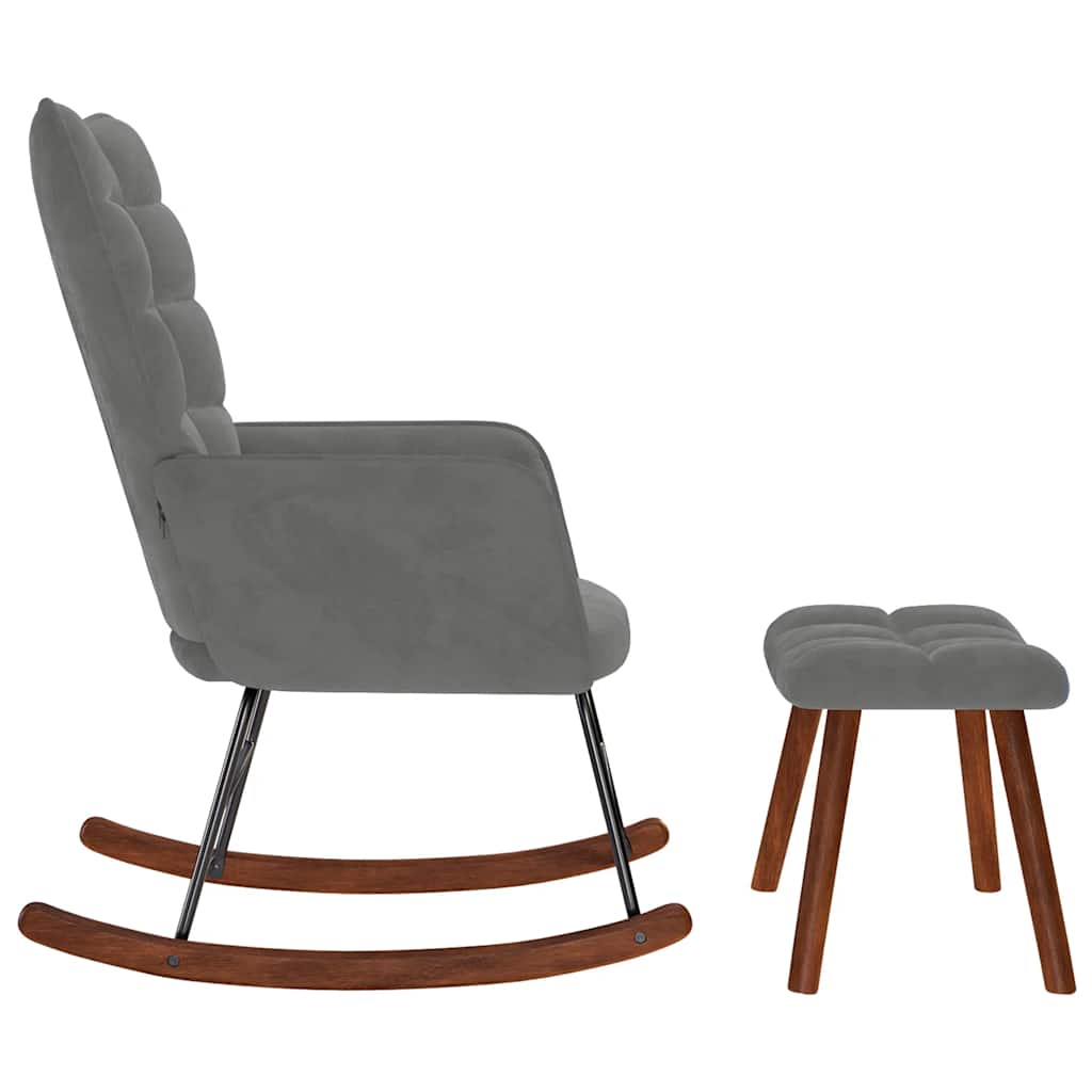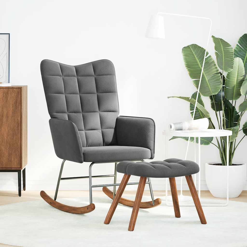 Suchen Sie nach einem Stuhl, in dem Sie sich nach einem anstrengenden Tag vollkommen entspannen können? Dieser bequeme Schaukelstuhl mit Hocker ist die perfekte Wahl! Weiches und bequemes Material: Der Samtstoff hat eine weiche und glatte Oberfläche, die ein angenehmes Gefühl auf der Haut vermittelt und Ihnen Wärme und ultimativen Komfort bietet.Stabiles und stabiles Gestell: Das Sperrholz- und Metallgestell des Sessels sorgt für Robustheit und Stabilität.Angenehmes Sitzerlebnis: Der Sessel verfügt über eine dick gepolsterte Sitzfläche und Rückenlehne sowie Armlehnen für hohen Komfort.Holzfüße: Die Holzfüße sorgen für hervorragende Stabilität und verleihen dem Stuhl gleichzeitig ein natürliches und angenehmes Aussehen. Dank der langen Schaukelschienen kippt der Sessel nicht so leicht um.Vielseitiger Fußhocker: Der Hocker ist vielseitig einsetzbar und dient als bequeme Fußstütze beim Liegen oder als zusätzliche Sitzgelegenheit.Vielfältige Einsatzmöglichkeiten: Dieser Loungesessel ist eine vielseitige und stilvolle Ergänzung für jeden Freizeitbereich zu Hause oder im Büro. Egal, ob Sie ihn neben das Wohnzimmersofa stellen oder eine gemütliche Ecke in Ihrem Schlafzimmer oder Arbeitszimmer schaffen, er wird die Ästhetik Ihres Wohnraums verbessern.