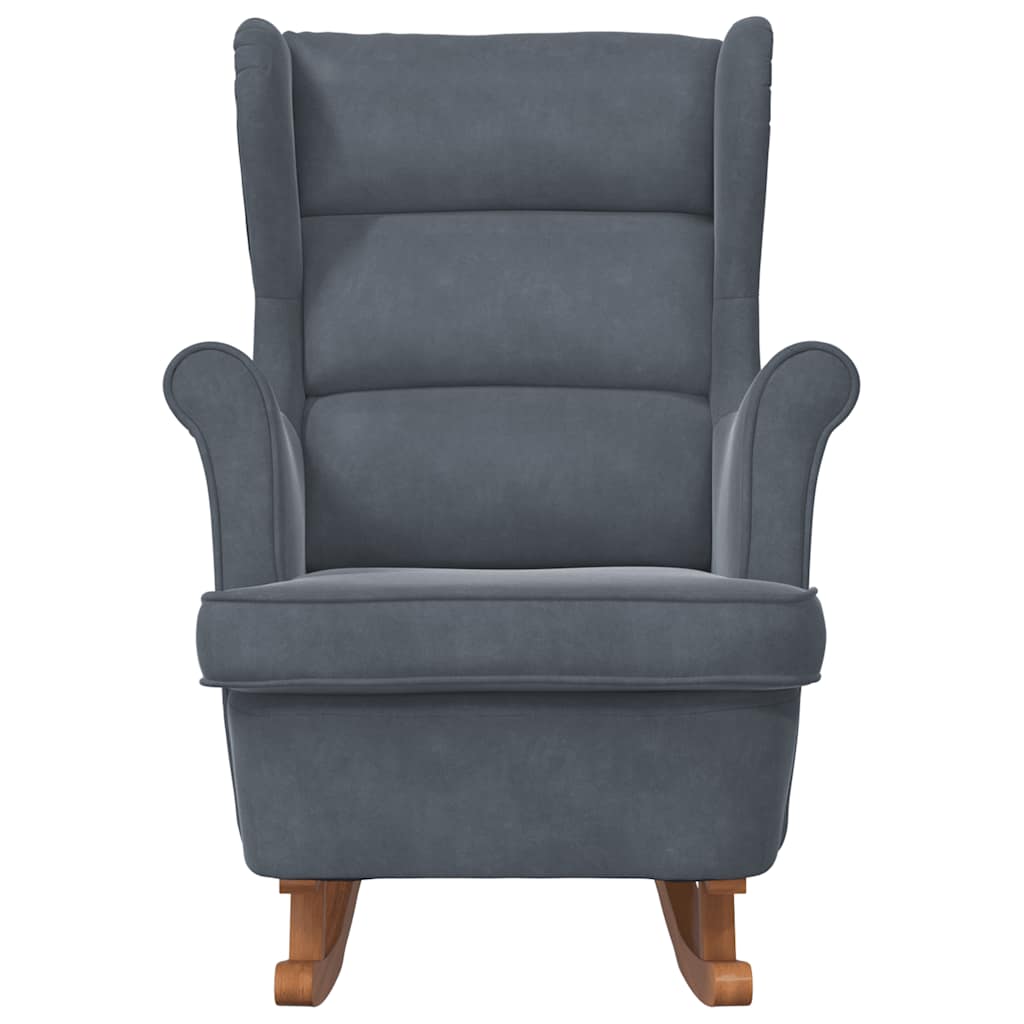 Schaukelstuhl Ohrensessel Dunkelgrau Samt und Massivholz