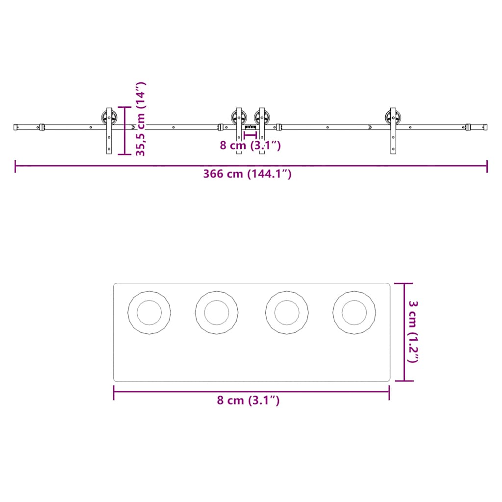 Schiebetürbeschlag-Set 366 cm Stahl Schwarz