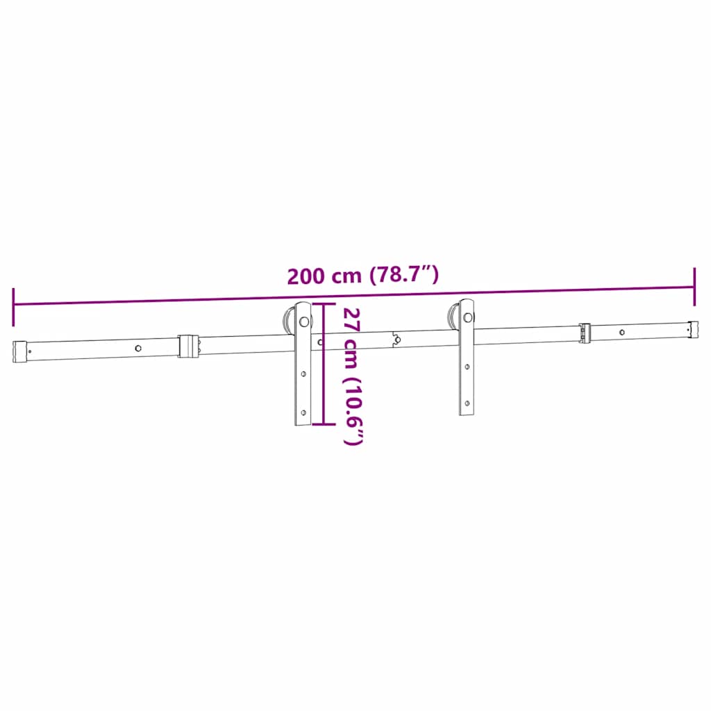 Schiebetürbeschlag-Set 200 cm Stahl Schwarz