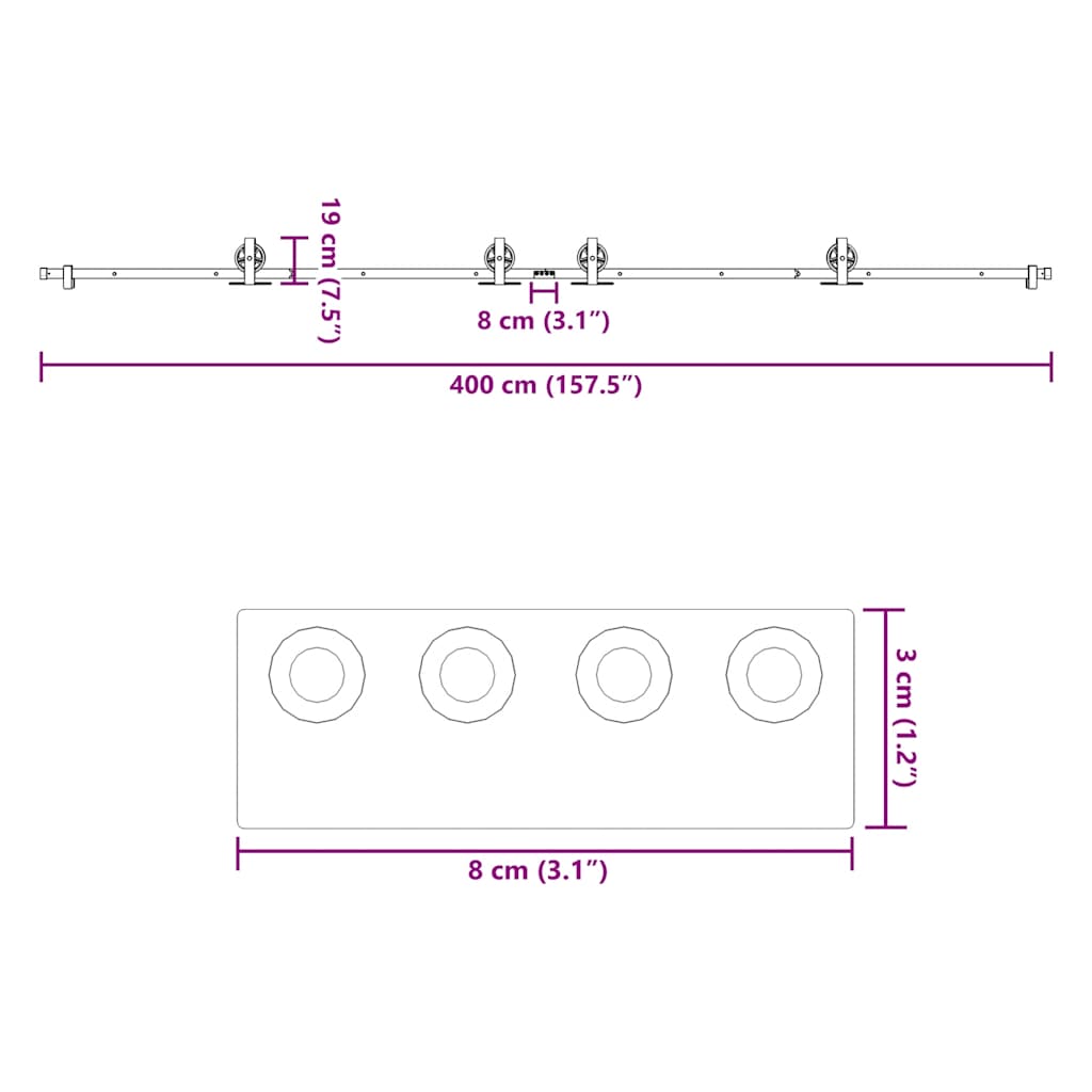 Schiebetürbeschlag-Set 400 cm Stahl Schwarz