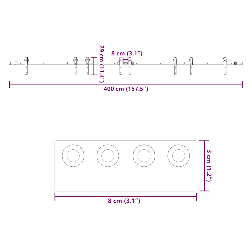 - Kompatibles Scheunentorschienenmaß: 40 x 6 mm (B x T)