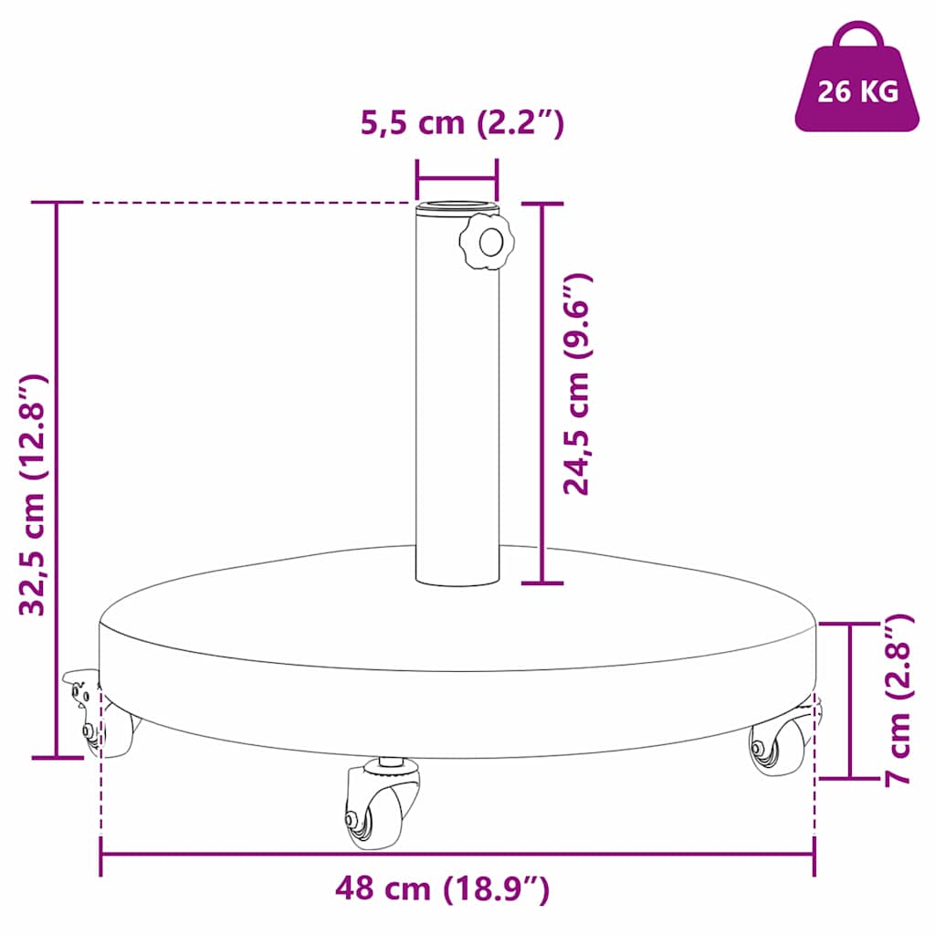Diese runde Outdoor-Sonnenschirmbasis ist genau das, was du brauchst, um sicherzustellen, dass dein Terrassenschirm immer an Ort und Stelle bleibt, und sie macht deine Outdoor-Chill-Zeit noch besser. Mit einem stylischen Design, das saubere Linien und eine einfache Ausstrahlung hat, passt sie super zu verschiedenen Outdoor-Themen. Egal, ob du im Garten oder auf der Terrasse bist, diese Schirmbasis bringt sowohl Nutzen als auch einen coolen Touch zu deinen Sommer-Events. Stahl- und Betonstruktur : Diese Basis ist aus robuster Mischung aus Stahl und Beton hergestellt, die top Unterstützung und Stabilität bietet. Der Stahl sorgt für einen soliden Rahmen, während der Beton garantiert, dass sie auch bei Wind nicht wackelt. Das bedeutet, dass sie draußen lange hält, egal wie das Wetter ist. UV-beständige Bauweise : Hergestellt aus UV-beständigen Materialien, hält diese Schirmbasis der Sonne stand. Sie verblasst nicht über die Zeit, also sieht sie immer frisch aus. Super für die Sonne, sorgt sie für effektiven Schatten, ohne dass das Aussehen darunter leidet. Genieß den Sommer, ohne dir Gedanken über Abnutzung machen zu müssen. Rundes Design : Das runde Design ist nicht nur modern, es passt auch zu vielen Schirmstilen. Es fügt sich leicht in verschiedene Terrassenarrangements ein, sodass es mit deiner aktuellen Möbelkombination gut harmoniert, egal ob du eine kleine Terrasse oder einen großen Garten hast. Pulverbeschichtete Oberfläche : Die Basis hat eine pulverbeschichtete Oberfläche, die eine widerstandsfähige Fläche schafft, die nicht schnell abplatzt oder zerkratzt. Diese Behandlung sorgt dafür, dass du sie Saison für Saison genießen kannst, ohne dir ständig Gedanken über Ersatzteile machen zu müssen. Auch die glatte Oberfläche macht die Reinigung echt einfach. Montage und Nutzung : Die Montage dieser Basis ist super einfach – schnapp dir einen Schraubenschlüssel und folge einfach den Anweisungen. Sie kommt als komplette Einheit und ist bereit für dein Outdoor-Vergnügen in Garten und auf Terrasse. Stell einfach die Basis auf, steck deinen Sonnenschirm rein, und schon kannst du die sonnigen Tage genießen.