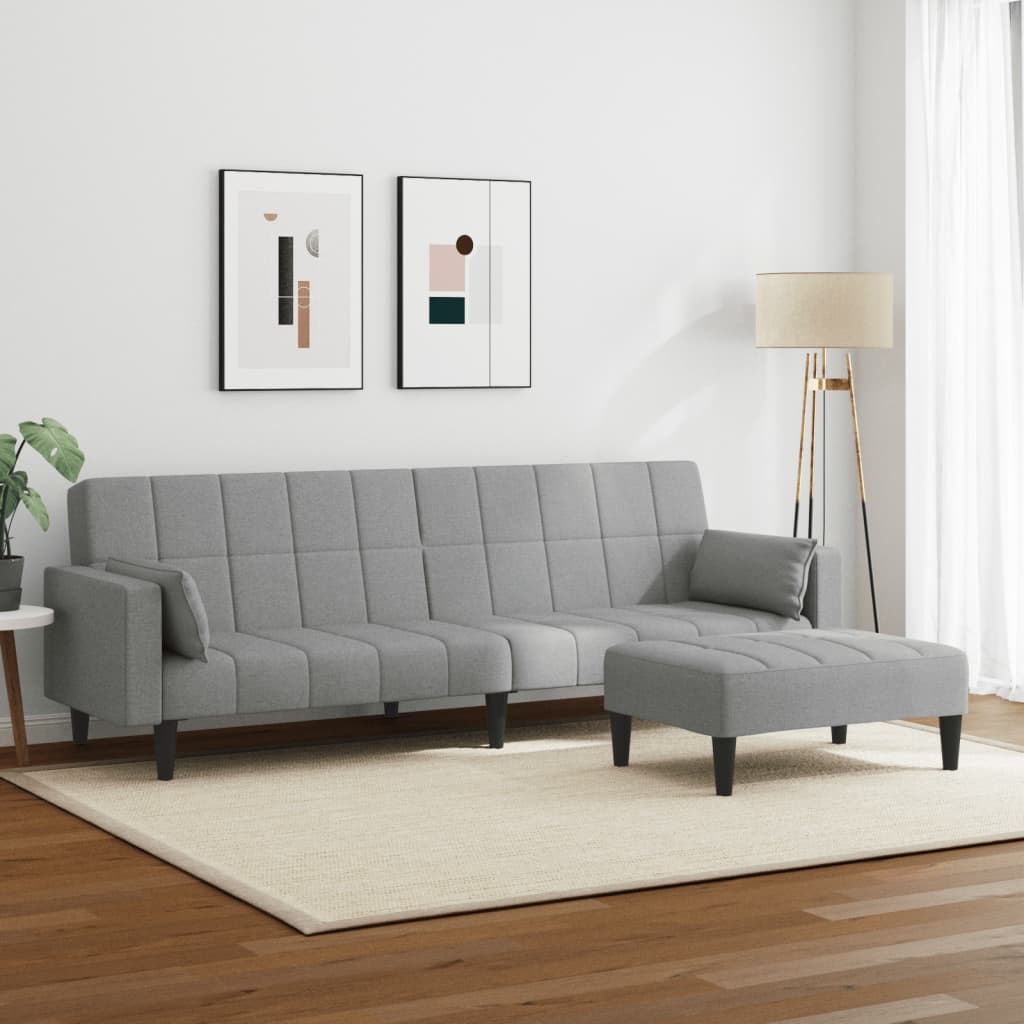 Dieses Schlafsofa mit Fußhocker bietet die perfekte Lösung für die Unterbringung von Übernachtungsgästen und einen komfortablen Sitzplatz während des Tages. 2-in-1-Funktion: Dieses Schlafsofa lässt sich schnell und einfach von einem Sofa in ein Bett und wieder zurück verwandeln. Die zwei separaten Rückenlehnen können teilweise oder ganz nach unten gedrückt werden, um den idealen Platz für ein Nickerchen oder ein Doppelbett zu schaffen.Bequemes Sitzerlebnis: Dieses Schlafsofa ist mit weichem und strapazierfähigem Stoff bezogen. Polyestergewebe vereint Weichheit, Atmungsaktivität und Strapazierfähigkeit, um höchsten Komfort und Gemütlichkeit zu genießen.Robust und stabil: Der Holzrahmen des Schlafsofas sorgt für Robustheit und Stabilität.Vielseitig einsetzbar: Dieses Gästebett mit Fußhocker eignet sich für verschiedene Räume wie Wohnzimmer, Heimkino, Keller, kleine Zimmer, Studentenzimmer, kleinere Wohnungen, Studios und Büros. Es bietet unvergessliche Momente mit der Familie und wertet außerdem jedes Zimmer auf.