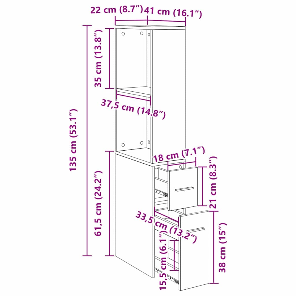 Dieser moderne Stauraum kombiniert Nützlichkeit mit Stil. Das vertikale Design passt super in kompakte Räume und ist genau das Richtige für Badezimmer oder andere Innenräume. Die schlichte rechteckige Form verleiht ihm einen sauberen Look, während die Konstruktion aus Holzwerkstoff noch oben drauf kommt. Mit einer praktischen Höhe hilft er dir, deine Sachen zu organisieren und ordentlich zu verstauen, während er klasse in deinem Zuhause aussieht. Über die praktische Seite hinaus ist dieser Schrank ein tolles Beispiel für schicken, praktischen Stil. Konstruktion aus Holzwerkstoff Robuste Bauweise und schickes Finish, der Schrank besteht komplett aus Holzwerkstoff. Das macht ihn resistent gegen die übliche Abnutzung, sodass er lange hält und dabei schlank aussieht, sodass er sich gut in verschiedene moderne Innenräume einfügt. Funktionale Stauraumfächer Entworfen, um den vorhandenen Platz ideal zu nutzen, hat dieser Schrank spezielle Bereiche für allerlei Gegenstände. Die leicht gleitenden Schubladen geben dir schnellen Zugriff auf deine Sachen, und die Regale sind perfekt für deine Badezimmerutensilien, Handtücher oder Deko, was deine Organisation maximiert. Moderne Designelemente Mit klaren Linien und wenig Dekoration fügt sich dieser Schrank mühelos in moderne Räume ein. Die langen, geraden Griffe sorgen für einfache Handhabung und bringen gleichzeitig einen eleganten Look. Sein Design bietet sowohl praktische Stauraumoptionen als auch einen coolen Blickfang in jedem Raum. Pflege & Wartung Damit dein Schrank schick aussieht, wisch ihn einfach regelmäßig mit einem feuchten Tuch ab. Diese einfache Pflege hilft, ihn in Top-Zustand zu halten und zu gewährleisten, dass er weiterhin ein nützlicher Teil deiner Stauraumlösungen bleibt. Montage-Spezifikationen Bei Erhalt des Schranks ist etwas Montage nötig, und es ist am besten, ihn mit zwei Personen und einem Schraubendreher aufzubauen. Die Montageanleitung zu befolgen ist wichtig, um sicherzustellen, dass er stabil ist und gut funktioniert, nachdem er zusammengebaut wurde.