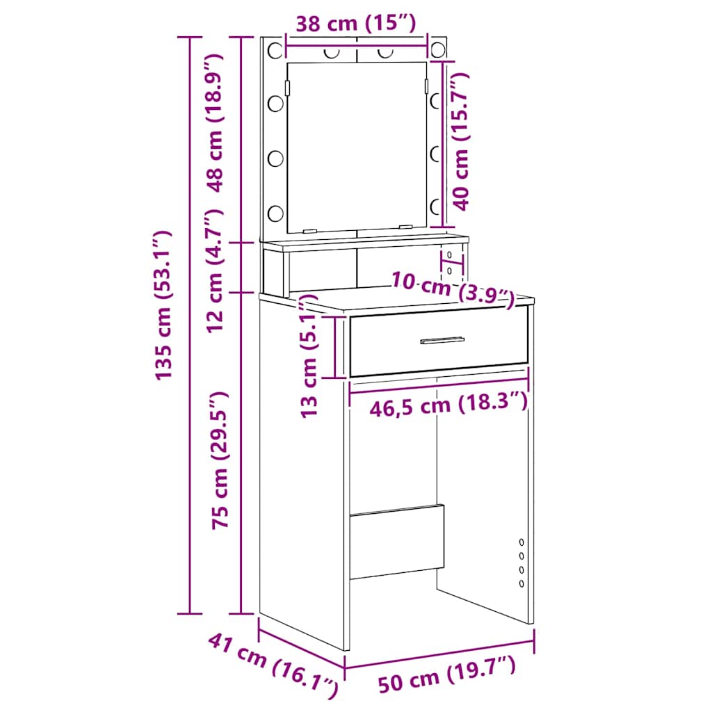- Lieferumfang: Kosmetikschminktisch mit Spiegel und Lichtern