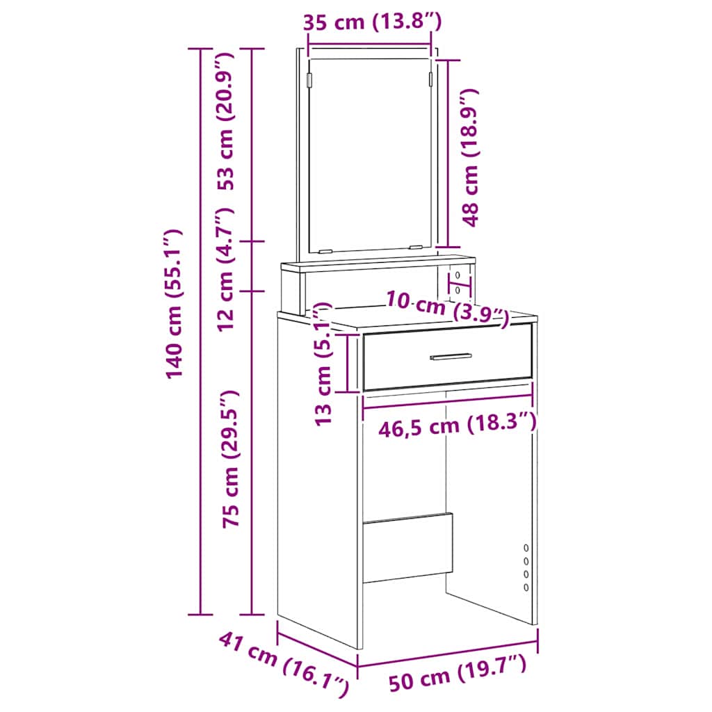 Dieser moderne graue Sonoma Schminktisch hat ein stylisches Design, das das Ambiente deines Schlafzimmers aufwertet. Ideal für persönliche Pflege und um dein Make-up aufzutragen, integriert er Stil und Funktion in deinen Alltag und ist ein Must-Have für deinen Raum. Hochwertiges Spanholz: Der Körper des Schminktischs besteht aus Spanholz, was Stabilität und eine stilvolle matte Oberfläche in grau Sonoma bietet. Flache Spiegeloberfläche: Ein praktischer Spiegel sorgt für eine klare Reflexion während der Pflege und macht deinen Alltag einfacher. Vollfunktionsschublade: Die geräumige Schublade hat traditionelle Zuggriffe für einen einfachen Zugriff auf deine persönlichen Gegenstände und Make-up, damit dein Arbeitsplatz aufgeräumt bleibt. Eingebaute Regale: Zwei praktische Regale bieten zusätzlichen Stauraum, ideal, um Deko oder wichtige Dinge griffbereit zu haben. Robuste Konstruktion: Der Schminktisch steht auf stabilen quadratischen Beinen, die Sicherheit bieten und ein maximales Gewicht von 10 kg tragen können, wodurch er ein zuverlässiges Möbelstück ist, das lange hält.