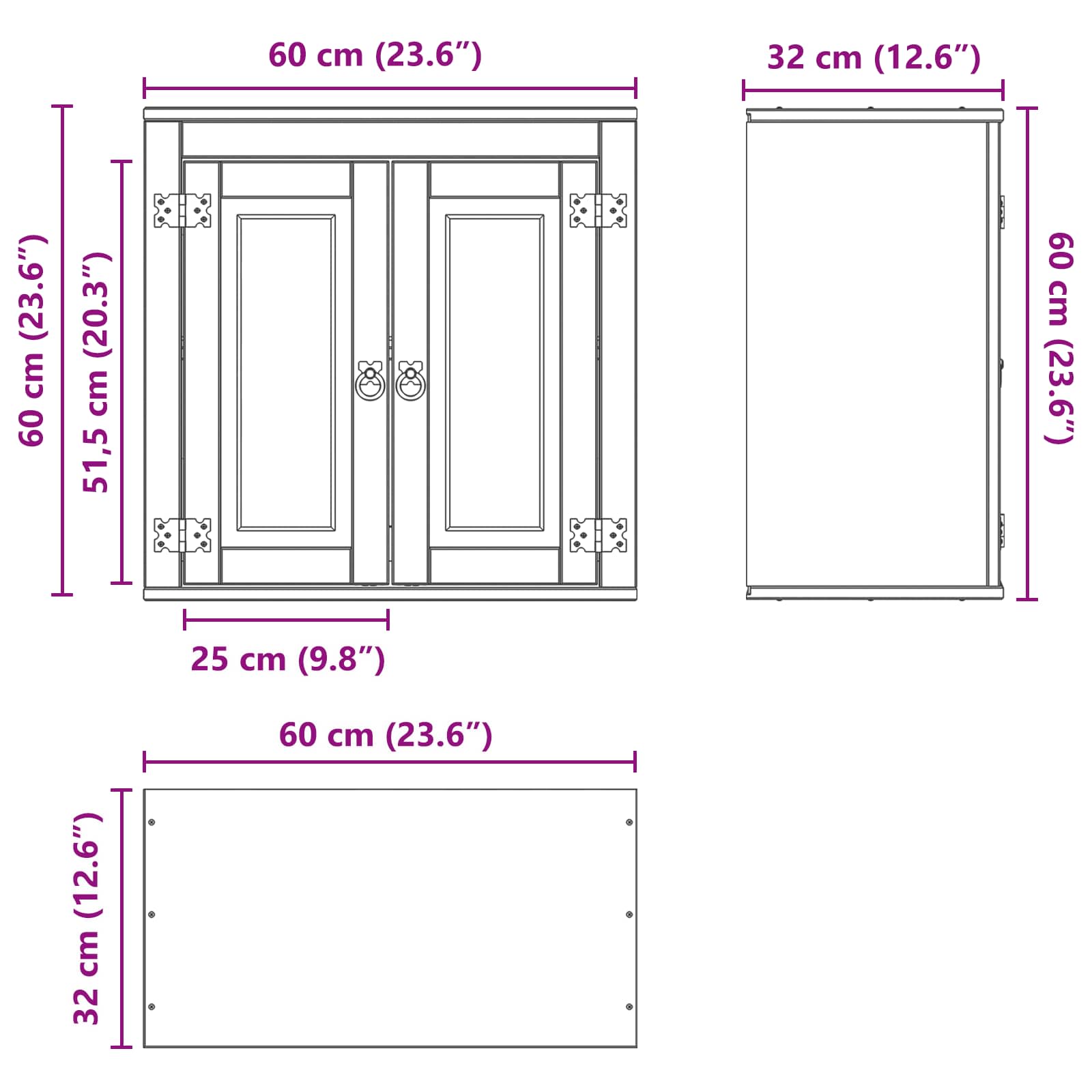 - Gesamtabmessungen: 60 x 32 x 60 cm (L x B x H)