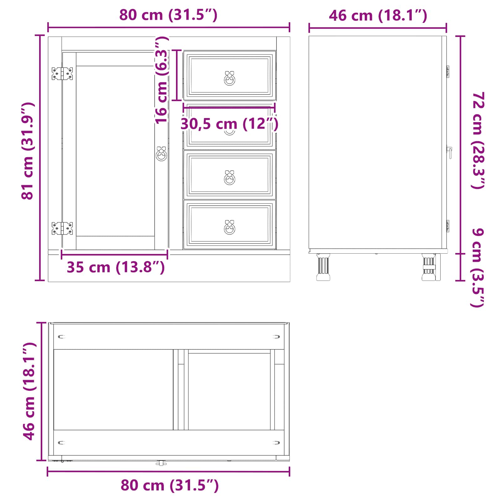 - Gesamtabmessungen: 80 x 46 x 81 cm (L x B x H)