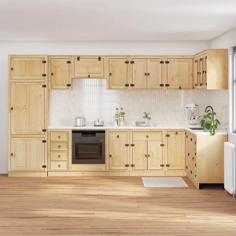 Der moderne Schrank ist die perfekte Lösung für deine Stauraumbedürfnisse. Er hat eine schlanke rechteckige Form und ein zeitgenössisches Design. Er fügt sich mühelos in Ess- und Wohnräume ein und bietet praktischen sowie attraktiven Stauraum. Egal, ob du eine Familie bist, die mehr Platz braucht, oder ein Busy Professional, der eine schicke Ablage sucht, dieser Schrank erfüllt all deine organisatorischen Wünsche. Massivholz Kiefer: Aus massivem Kiefernholz gefertigt, garantiert dieser Schrank Langlebigkeit und ein natürliches Aussehen. Kiefer ist robust und bietet ein tolles Finish, das in jedes Ambiente passt und über die Jahre formstabil bleibt. Die beruhigende Ästhetik von Kiefer ist perfekt für moderne ebenso wie traditionelle Räume. Vielseitige Komponenten: Dieser Schrank hat viele gut durchdachte Komponenten: Tür mit Scharnieren, Schubladen und Regale, die effizient Stauraum schaffen. Die Kombination aus Fächern und Schubladen bietet Flexibilität für diverse Dinge, von Alltagsgegenständen bis hin zu speziellen Essbestecken. Durchdachte Designelemente: Mit schicken schwarzen Metall-Schlaufengriffen und einer modernen rechteckigen Form verbindet dieser Schrank Funktionalität mit Style. Diese Details machen ihn besonders ansprechend und bringen einen Hauch Raffinesse in jeden Raum. Vielseitige Platzierung: Speziell für Ess- und Wohnräume entworfen, fügt sich dieser Schrank problemlos in verschiedene Umgebungen ein. Ob du Geschirr aufbewahrst, Deko präsentierst oder Alltagsgegenstände organisierst, sein Design deckt verschiedene Bedürfnisse ab, ohne auf Stil zu verzichten. Zugänglichkeit und Wartung: Die leicht zugänglichen Fächer erleichtern das Finden und Entnehmen von Gegenständen. Pflege ist minimal nötig - sichere hohe Möbel an der Wand, um ein Umkippen zu vermeiden, was Sicherheit bietet und die Lebensdauer des Schranks verlängert.