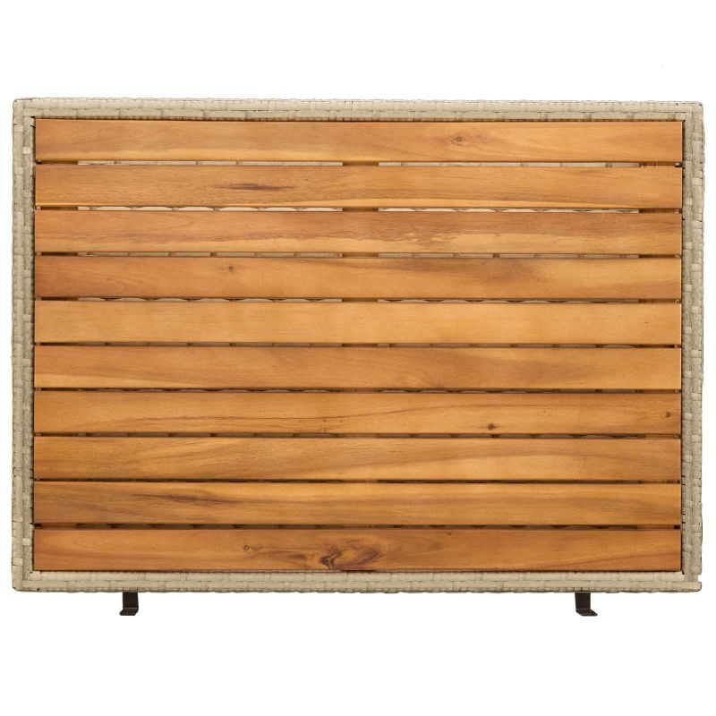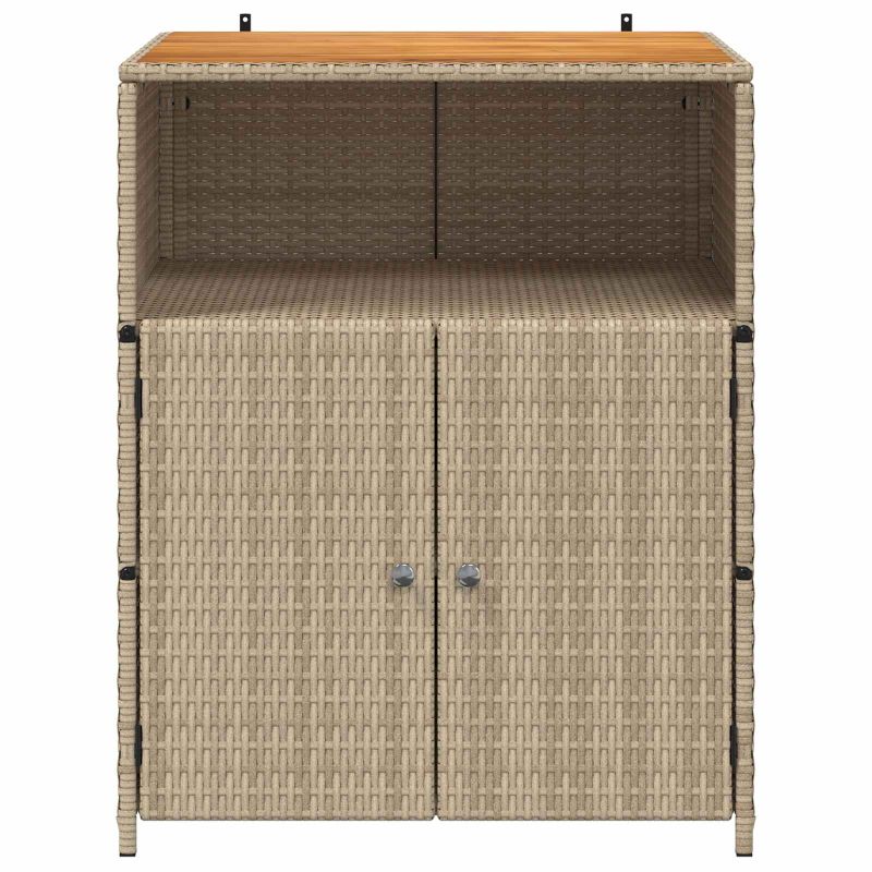 Dieser schicke Rattan-Schrank mit Holzoberfläche bringt modernen Flair in dein Zuhause, drinnen und draußen. Er wurde so gestaltet, dass er perfekt in jeden Garten oder jede Terrasse passt. Mit klaren Linien und durchdachtem Design strahlt er Einfachheit und Stil aus. Die Mischung aus Materialien und Farben macht ihn zu einer vielseitigen Ergänzung für viele Einrichtungsstile und ist die ideale Lösung für Hausbesitzer, die nach praktischen und schicken Möbeln suchen. Massivholz Akazie: Der Schrank hat eine robuste Oberfläche aus massivem Akazienholz, bekannt für seine Stärke und Wetterbeständigkeit. Die natürlichen Holzfarben sorgen für Wärme und Charakter und passen perfekt zu dem modernen Design. Pulverbeschichteter Stahlrahmen: Der stabile pulverbeschichtete Stahlrahmen sorgt für Langlebigkeit. Die geölte Oberfläche erhöht die Ästhetik und schützt vor Feuchtigkeit. Poly-Rattan-Elemente: Regale und Türen aus Poly-Rattan bieten eine coole Kombination aus Textur und Widerstandsfähigkeit, ideal für drinnen und draußen. Geräumiges Design: Mit viel Stauraum kann der Schrank verschiedene Sachen wie Gartenwerkzeuge oder Haushaltsartikel unterbringen. So bleibt alles schön ordentlich. Pflegehinweise: Damit der Schrank lange schön bleibt, gelegentlich mit einem weichen, feuchten Tuch reinigen. Scharfe Chemikalien vermeiden, um die Oberfläche zu schonen.
