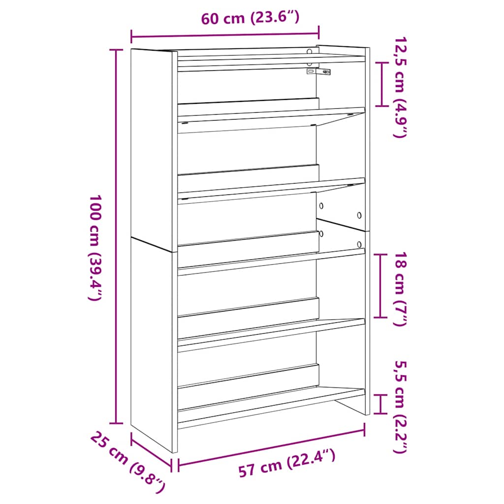 In diesem eleganten Schuhregal lassen sich Ihre Schuhe ganz ordentlich aufbewahren, um für ein aufgeräumtes Wohnumfeld zu sorgen! Starkes und langlebiges Material: Holzwerkstoff ist ein langlebiges und robustes Material mit einer glatten Oberfläche, das gegen Feuchtigkeit, Verformung und Rissbildung beständig ist, wodurch es eine zuverlässigen Wahl für die Herstellung von Möbeln ist.Viel Stauraum: Das Schuhregal verfügt über mehrere Fächer und bietet dadurch reichlich Platz für deine Schuhe. Mit diesem praktischen Schrank für Schuhe wirst du dich nie wieder über herumliegende Schuhe ärgern.Praktische Oberplatte: Die robuste Oberplatte eignet sich ideal, um Dekoartikel und Bilderrahmen zur Schau zu stellen oder Sachen wie Schlüssel oder Geldbörsen griffbereit aufzubewahren.Platzsparendes Design: Das schmale Schuhregal ist so konzipiert, dass es perfekt in kleine Räume wie Eingangsbereiche, Flure, Abstellräume usw. passt.Pflegeleicht: Dank seiner glatten Oberfläche lässt sich der Tisch mit einem feuchten Tuch leicht reinigen und erfordert wenig Pflege.Achtung:Um ein Umkippen zu vermeiden, sollte dieses Produkt mit der mitgelieferten Wandhalterung gesichert werden.